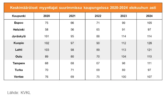 * Luvut perustuvat KVKL:n ylläpitämään Hintaseurantapalveluun, Kiinteistöliiton ja Omakotiliiton PTT:lla teettämästä Asumismenot 2024 -selvitykseen, Finanssiala ry:n Pankkibarometriin sekä Tilastokeskuksen aineistoihin. Elokuun kauppaluvut haettu 16.9.2024.