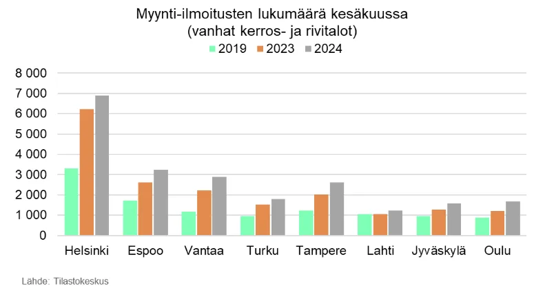 Vanhojen asuntojen kauppamäärät ovat kuitenkin kasvaneet kahtena peräkkäisenä kuukautena edellisvuoteen verrattuna, ja elokuussa kasvua kertyi 8,8 %. Korkea tarjonta jarruttaa kuitenkin edelleen hintojen kehitystä.