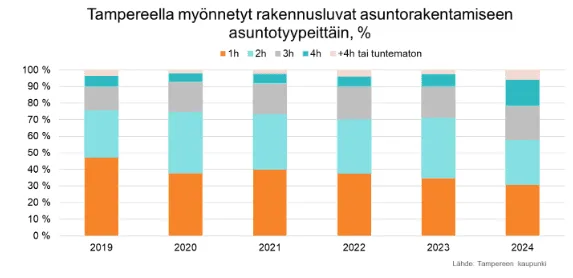 Esimerkiksi Tampereella myönnetyt rakennusluvat povaavat asuntojen keskikoon selkeää kasvua. Yksiöiden osuus myönnetyistä rakennusluvista oli 47 % vuonna 2019, 38 % v. 2020, 40 % v. 2021, 38 % v.2022, 35 % v. 2023 % ja 31 % vuoden 2024 tammi-huhtikuussa.