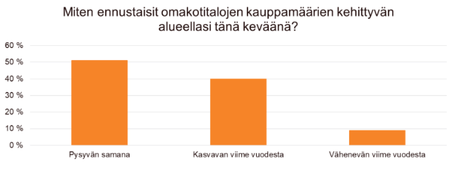 Omakotitalobarometri 2025:n mukaan markkinalla on yhä epävarmuustekijöitä, mutta vain harva välittäjä (9 %) odottaa kauppamäärien laskevan viime vuoteen verrattuna. Suurin osa ennakoi kauppojen määrän pysyvän ennallaan (51 %) tai kasvavan (40 %). Omakotitalokaupan alkuvuosi onkin ollut lupaava. Vanhojen omakotitalojen kauppamäärät kasvoivat huhtikuussa 18,1 % ja tammi–huhtikuussa 26,8 % verrattuna edellisvuoden vastaaviin ajankohtiin. Kasvu on ollut selvästi voimakkaampaa kuin vanhojen kerrostalojen markkinalla, jossa vastaavat luvut olivat 2,8 % ja 17,3 %.