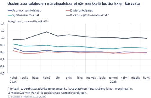 “Suomen Pankin mukaan uusien asuntolainojen marginaalit ovat pysyneet likimain ennallaan viimeisen 12 kuukauden aikana, mikä viittaa siihen, etteivät pankit ole hinnoitelleet lainoihin merkittävästi aiempaa suurempia luottoriskejä. Nyt korkojen lasku ja aiemmin hankitut korkosuojaukset helpottavat velanhoitoa ja ajan myötä vahvistavat luottamusta tulevaan. Asuntomarkkinan todella vaikea sykli selätettiin kunnialla”, summaa Huoneistokeskuksen toimitusjohtaja Marina Salenius nykyistä markkinatilannetta.