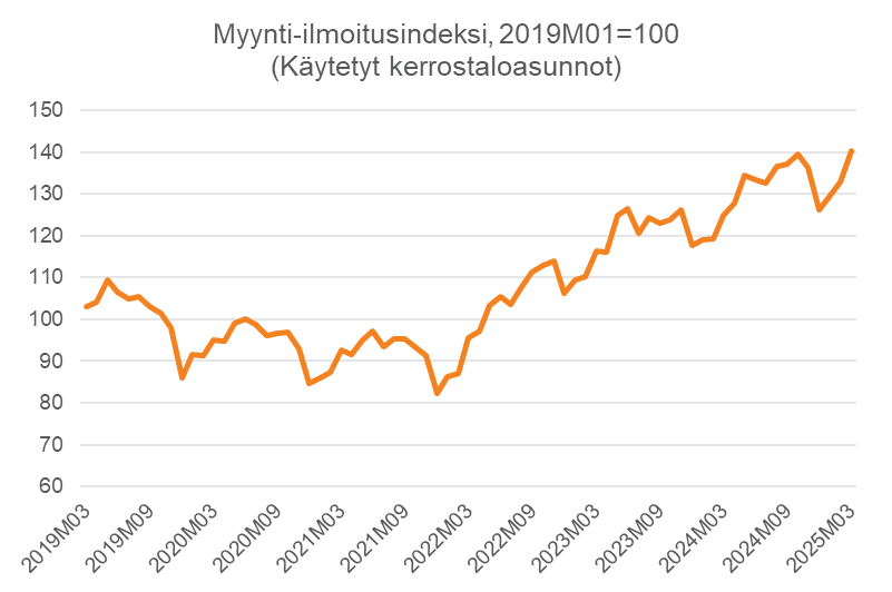 ”Alkuvuoden vilkastuneesta asuntokaupasta huolimatta käytettyjen asuntojen tarjonta kasvoi 25Q1:llä uusiin huippulukemiin Etuovi.comin datan mukaan. Tämä rajoittaa hintojen nousupotentiaalia lyhyellä aikavälillä, sillä tarjonnan sulaminen vie pidempään kuin aiemmin on arvioitu. Todellinen hintakäänne edellyttäisi selvästi laajempaa ostajien aktivoitumista sekä tarjonnan merkittävämpää sulamista. Toisaalta tarjonnan kasvu kuvastaa patoutuneita asunnonvaihtotarpeita. Myynti-ilmoitusten kasvu kertoo, myyjien halukkuus tai tarve myydä asuntoja on kasvanut. Asunnonvaihtotarvetta on selvästi kertynyt, ja sen purkautumista vasta odotetaan,” summaa Huoneistokeskuksen toimitusjohtaja Marina Salenius.