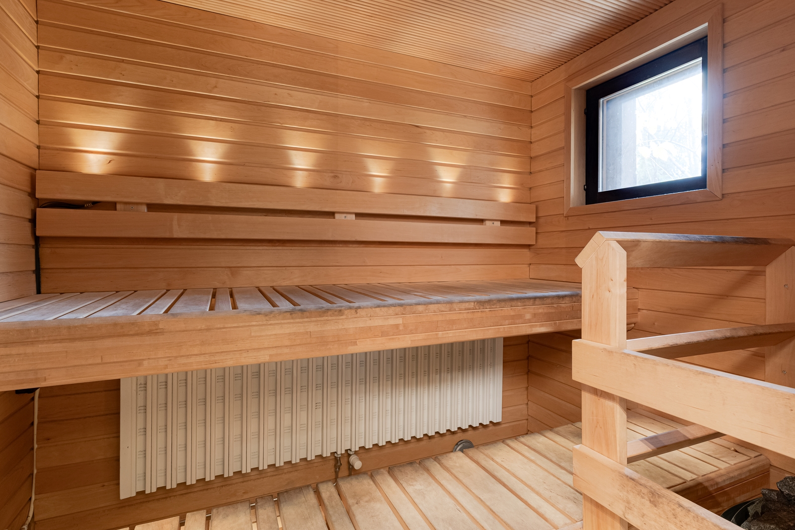 | Saunan kuvaus | Seinät (puu), lattiat (laatta), Sähkökiuas |