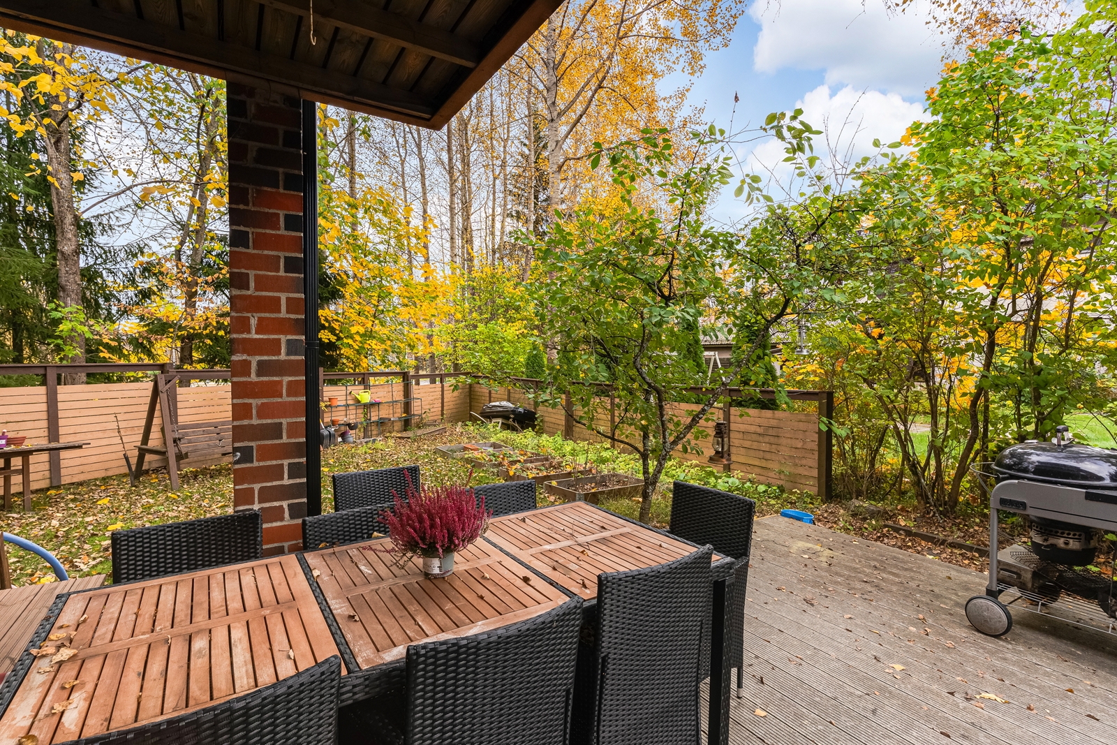 Asunnon etelä-länsisuuntainen lasitettu parveke ja oma terassi tarjoavat upeat mahdollisuudet nauttia ulkoilmasta. Isolta pihalta avautuu vehreä näkymä, joka tuo luonnon lähelle. Lisäksi jokaiselle asunnolle kuuluu oma autokatospaikka.