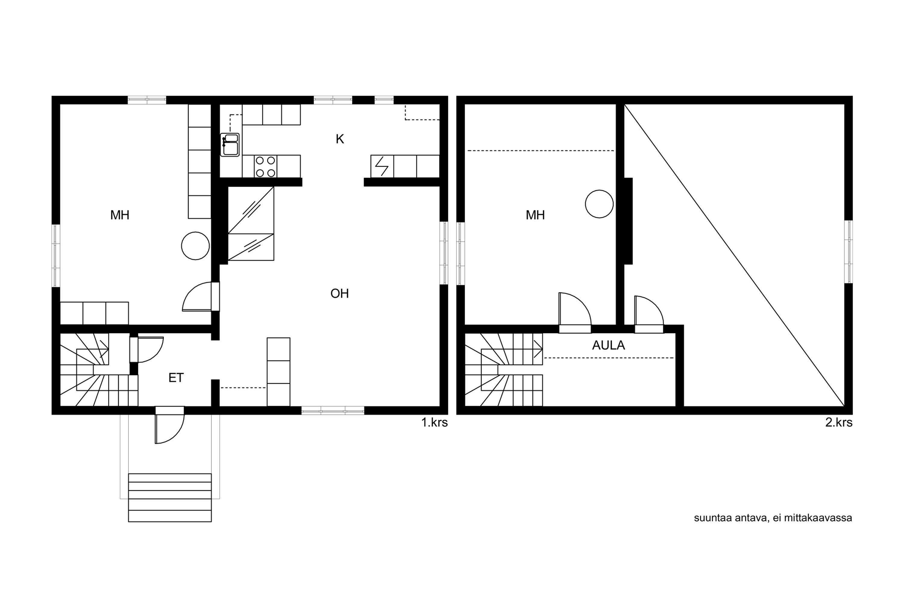 | Muut huoneet ja tilat | Ullakkokerroksessa on yksi huone ja rakentamaton ullakko-osa |
