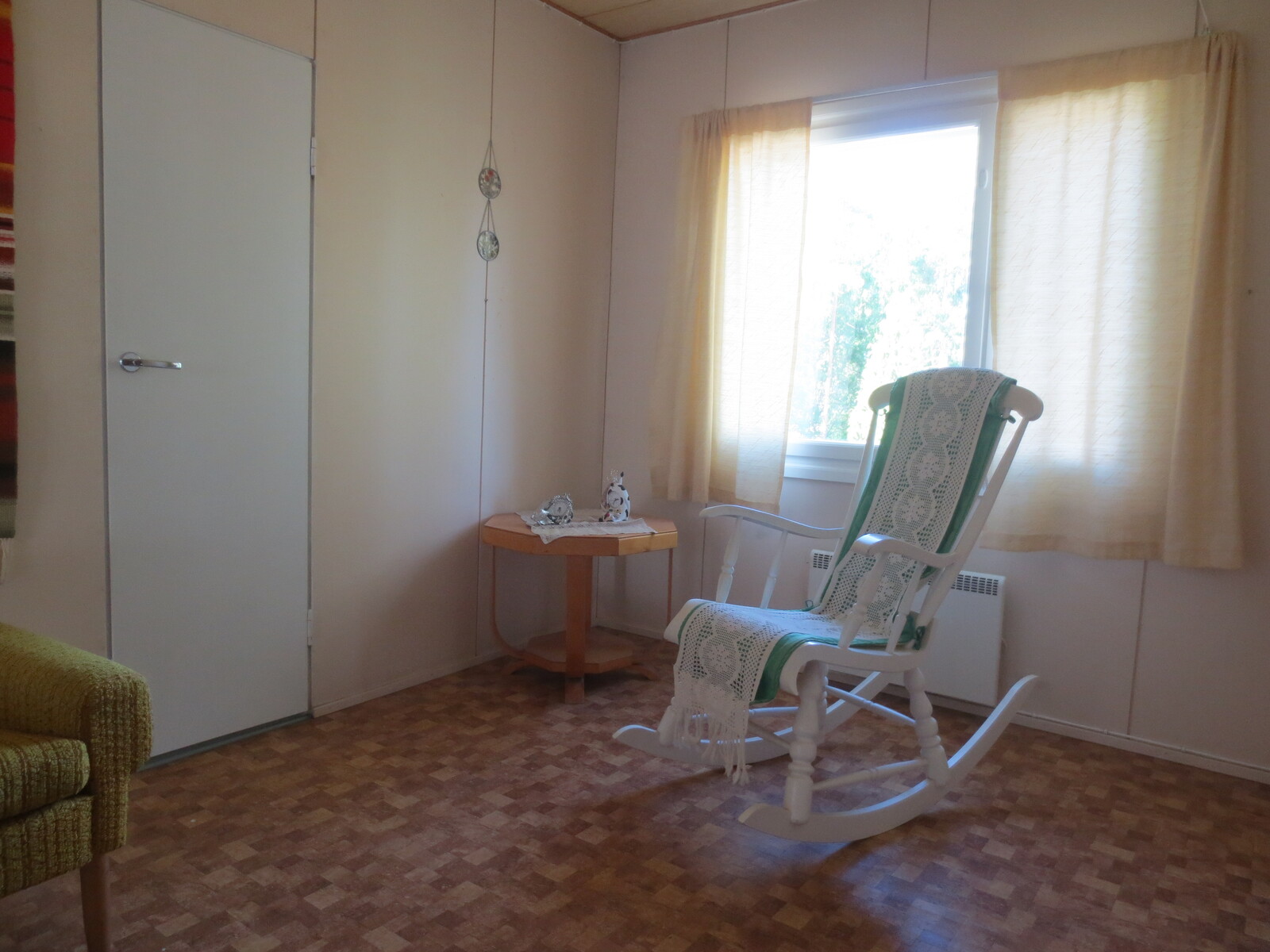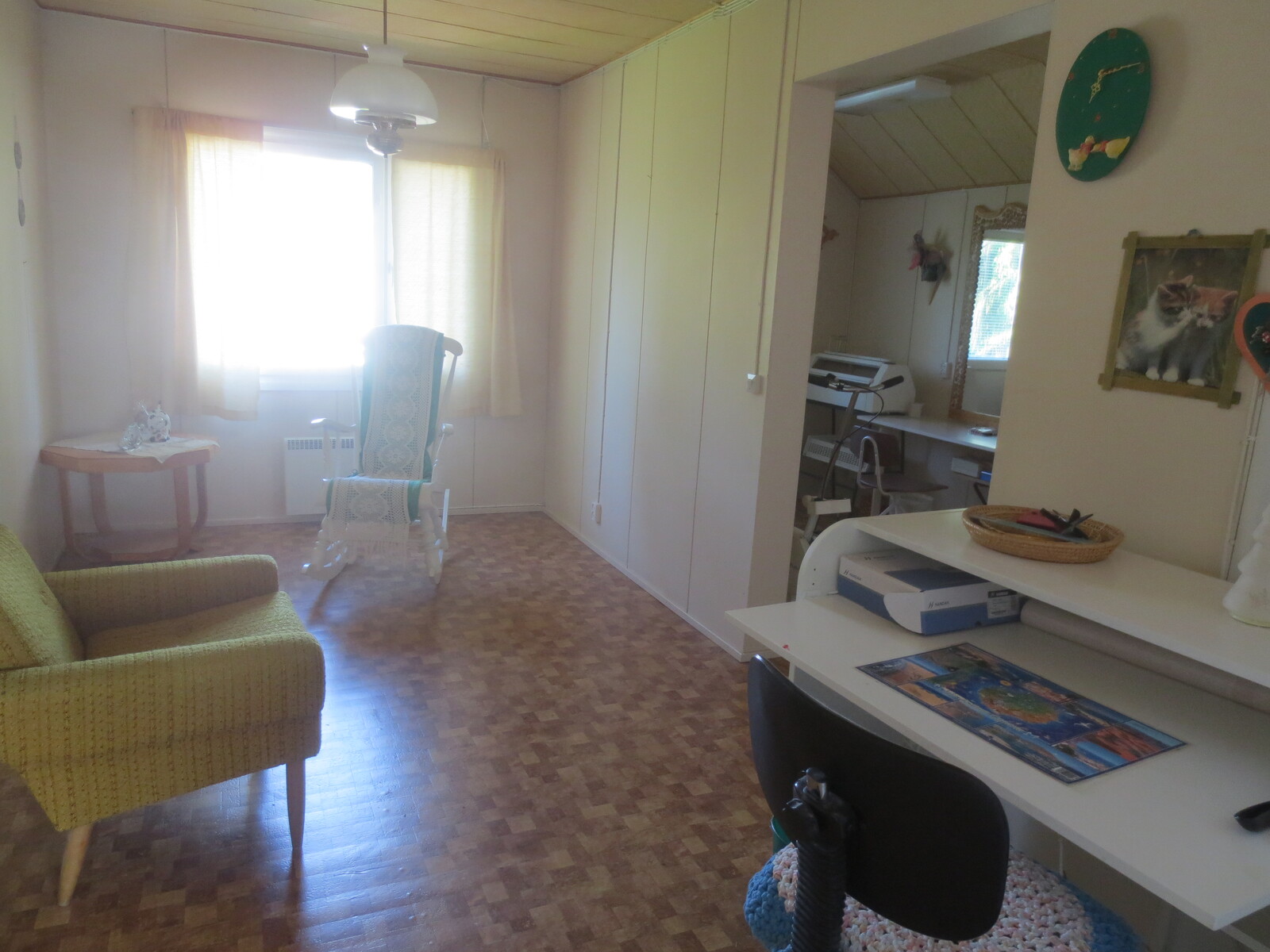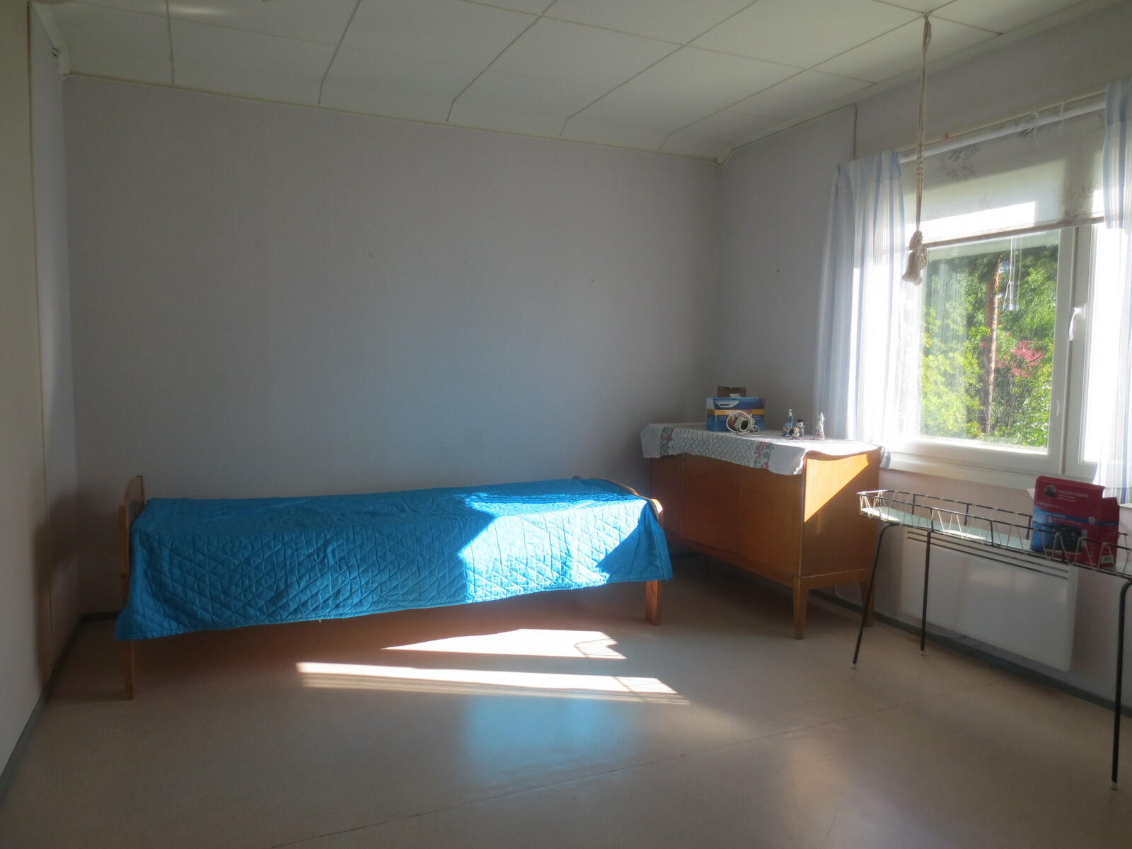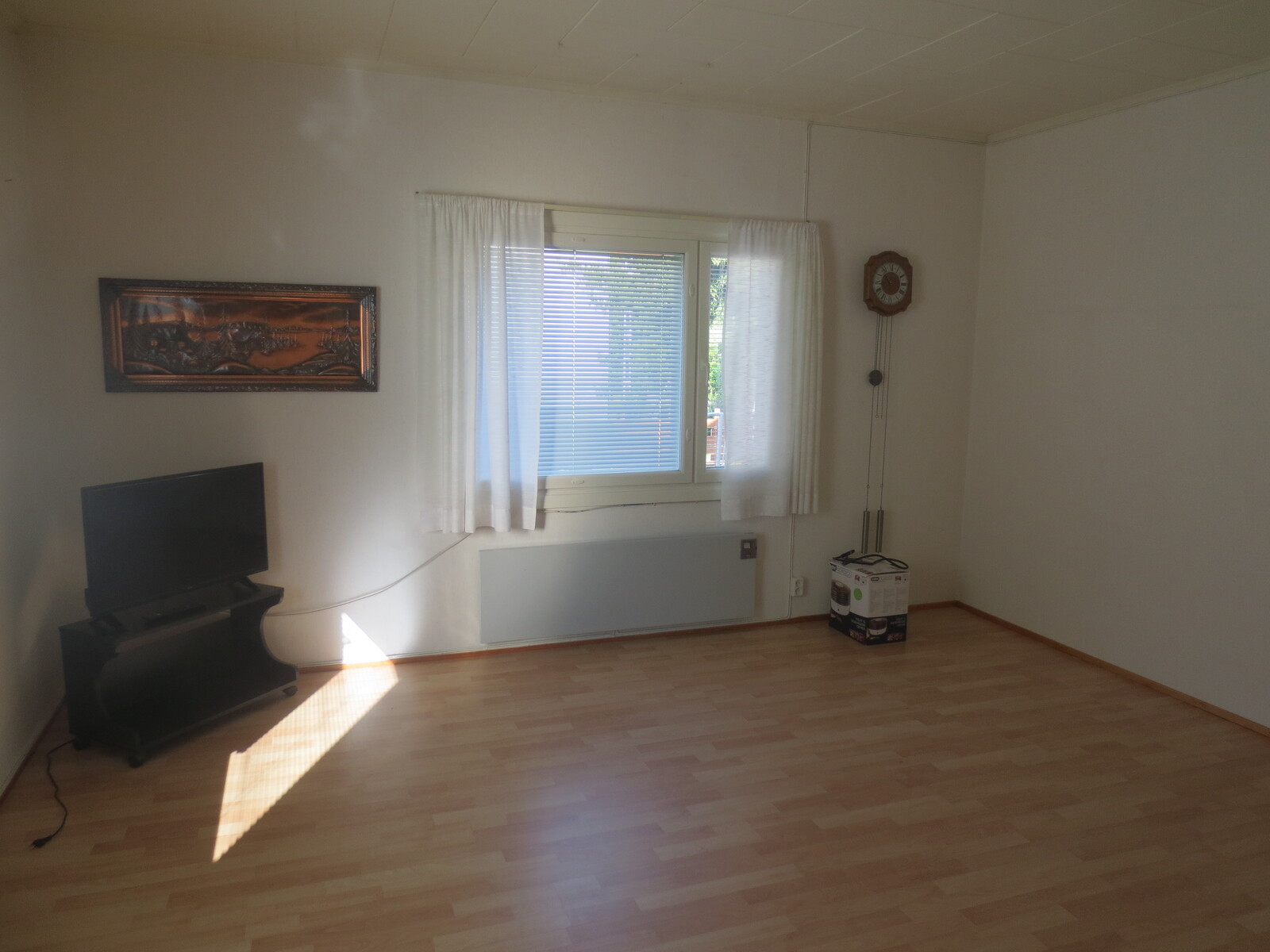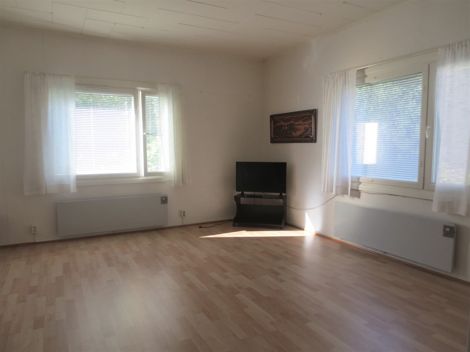| Olohuoneen kuvaus | Seinät (tapetti), lattiat (laminaatti) |