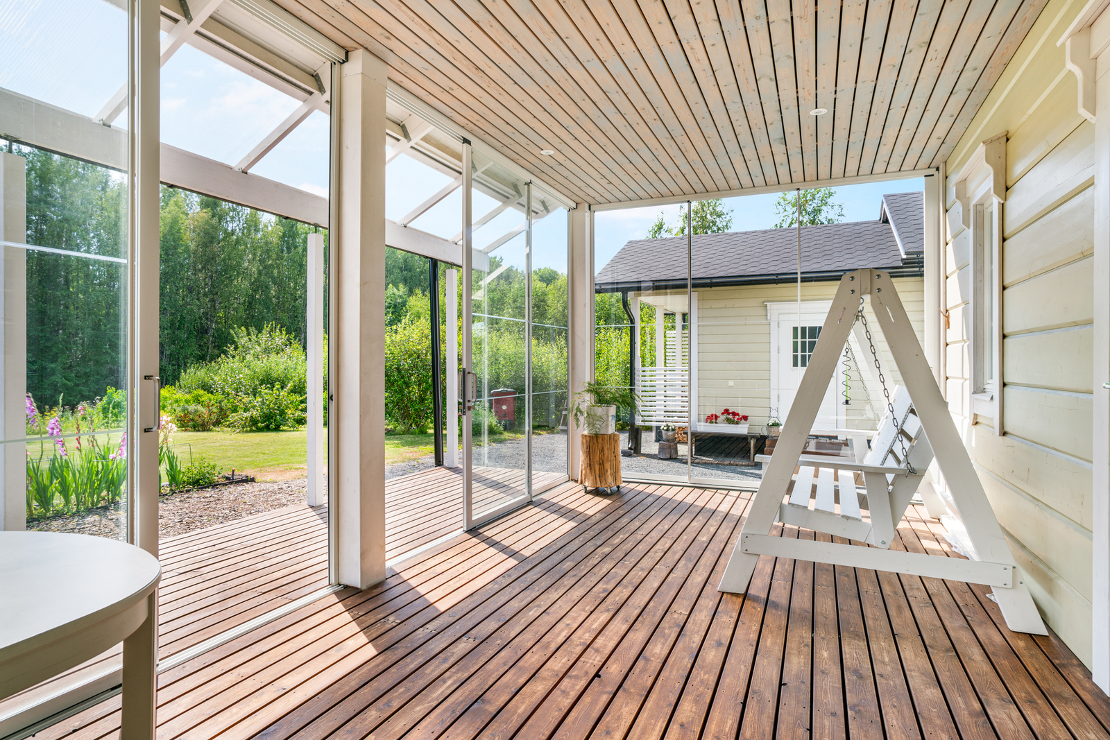 Makuuhuoneissa, eteisessä ja tuulikaapissa kiintokaapistot vaatteille ja kodin tekstiileille. Lisäksi kahden makuuhuoneen vierestä löytyy vaatehuone. Kodinhoitohuoneesta löytyy kaikki tarpeellinen arjen pyörittämiseen. Tästä huoneesta pääsy joen puoleiselle lasitetulle terassille ja aina katetulle terassille saakka. Sauna- ja pesutilojen yhteydessä vielä toinen vessa. Pesuhuoneesta löytyy kaksi suihkua, joista toinen sadesuihkulla. Perinteinen puulämmitteinen kiuas tarjoaa loistavat löylyt.