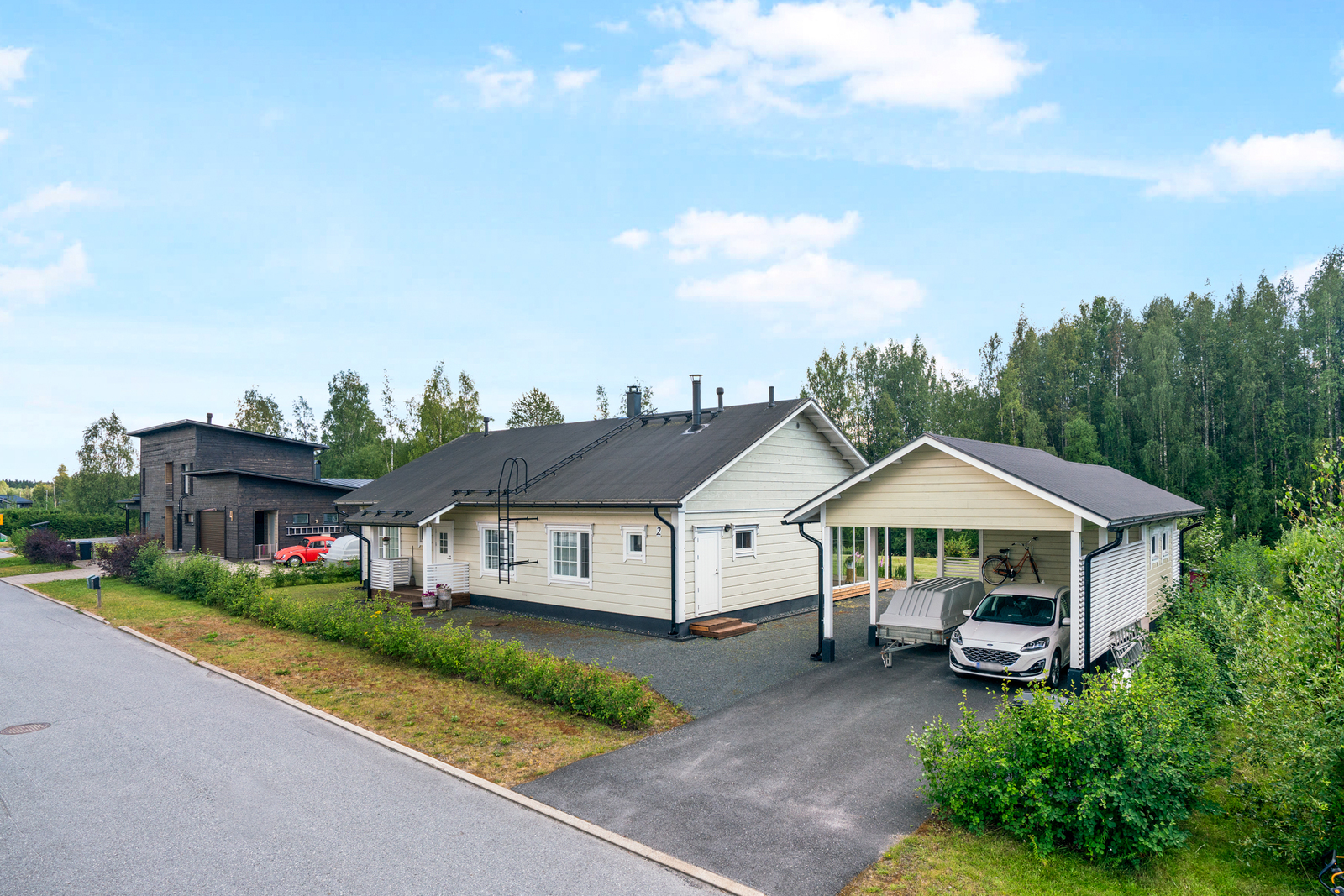 Suositulta Multimäen alueelta Iiksenjoen rannalta omalla 1 544 m² tontilla Kontiohirrestä tehty omakotitalo. Tämä kiinteistö lämpiää energiatehokkaalla maalämmöllä. Maalämmön lisäksi lämmityksen tukena on myös moderni Tulikiven varaava takka. Kesähelteille maalämmöstä löytyy viilennystoiminto. Sähkönkulutus kahden hengen taloudella vain 9018 kWh/v. Puuta ei ole poltettu lämmitysmielessä juuri lainkaan. Asuinrakennuksen lisäksi on talousrakennus, jossa autolle katospaikka ja kylmävarastotila. Kiinteistö on liitetty Elisan valokuituun.