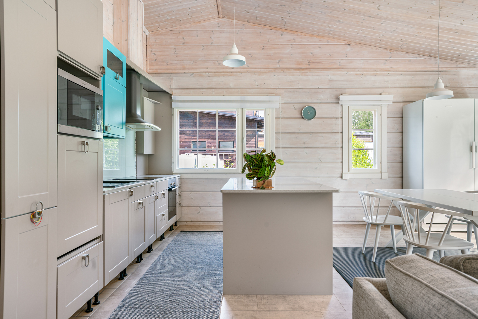 | Keittiön kuvaus | Liesi (Induktioliesi ja erillisuuni), työtasot (kivi), seinät (laatta ja puu), lattiat (vinyyli), liesi, erillisuuni, astianpesukone, jääkaappipakastin ja liesituuletin / hormi, kiinteät valaisimet |