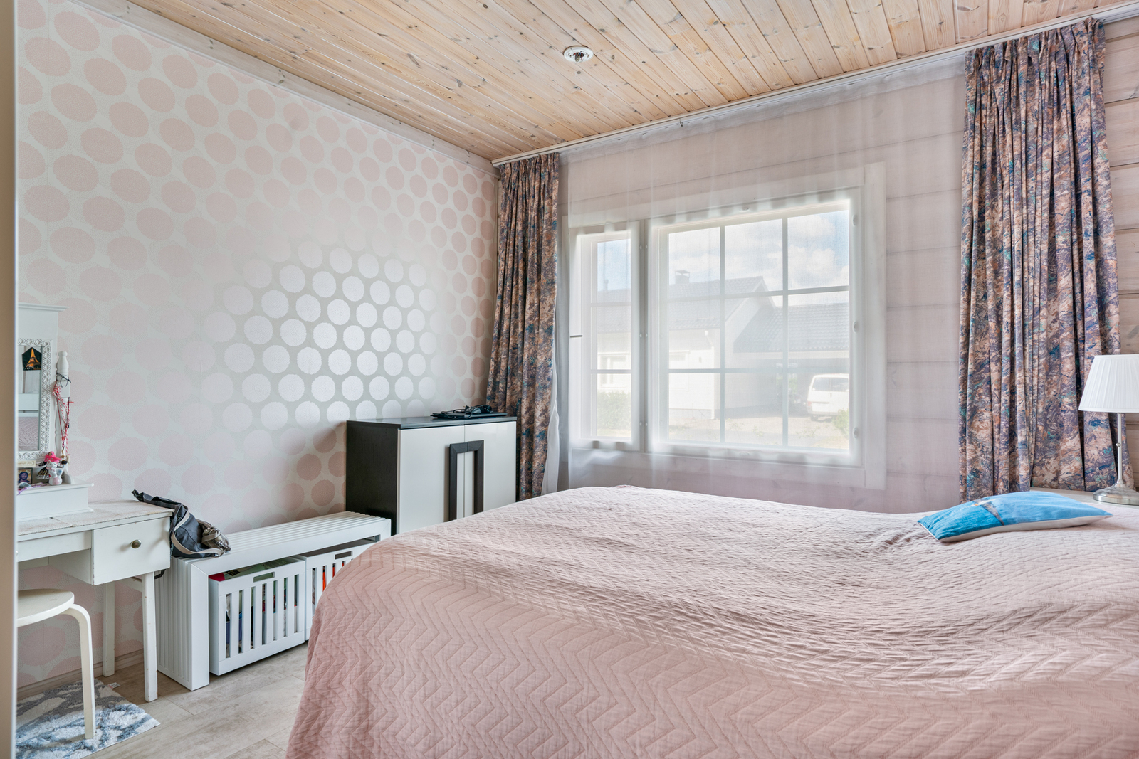| Makuuhuoneen kuvaus | Lukumäärä: 3, seinät (tapetti ja puu), lattiat (vinyyli) |