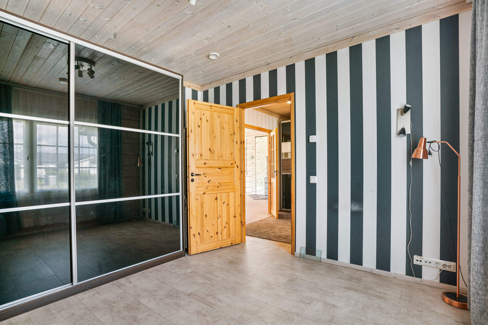| Muut huoneet ja tilat | Eteisessä laattalattia ja seinät hirrestä, paneelista ja yksi seinä tapetoitu. Vaatehuoneessa vinyylilattia ja seinät hirrestä, kaakelista ja maalattua kipsilevyä. |