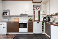 | Keittiön kuvaus | Liesi (Keraaminen liesi), seinät (laatta ja maali), lattiat (laminaatti), jääkaappi, erillinen pakastin, liesituuletin, astianpesukone ja kiinteät valaisimet, Keittiöremontti 2010, kaapistot ja seinän siirto |