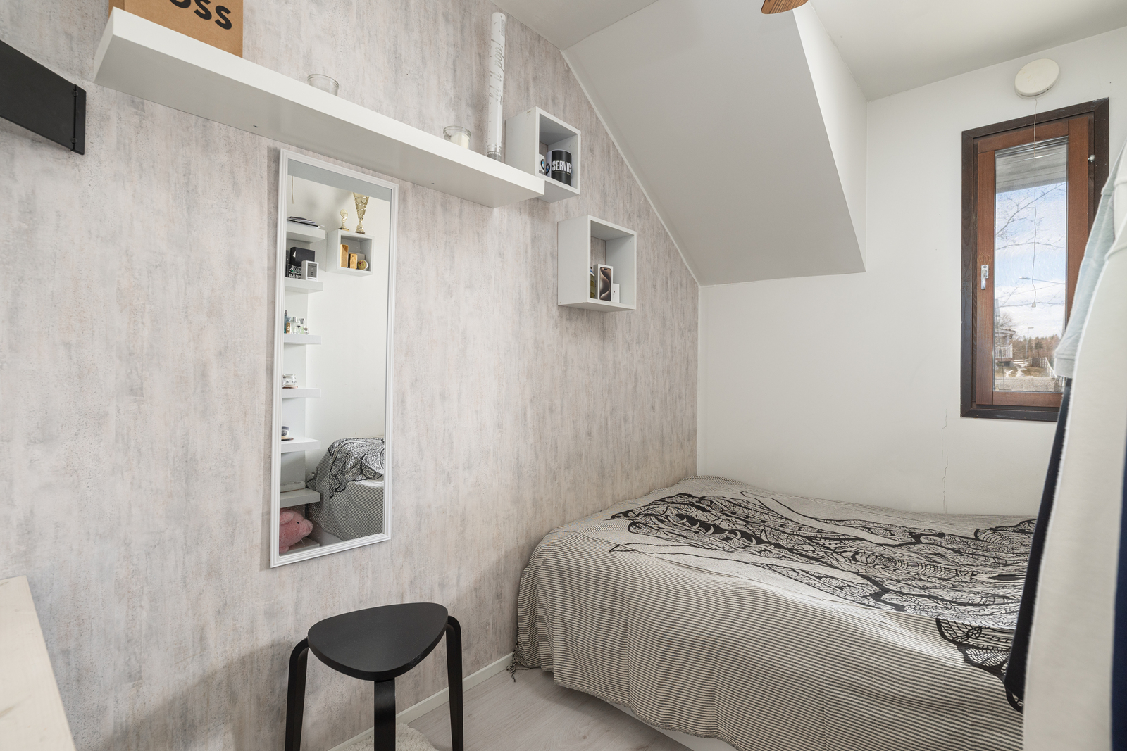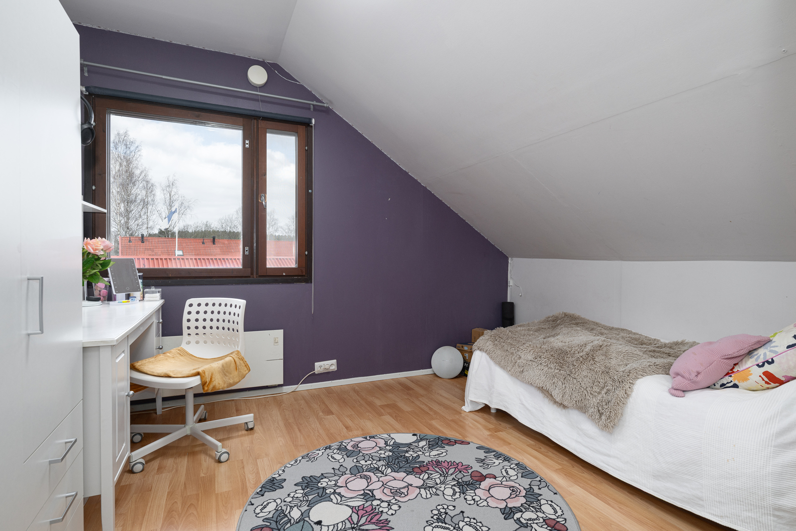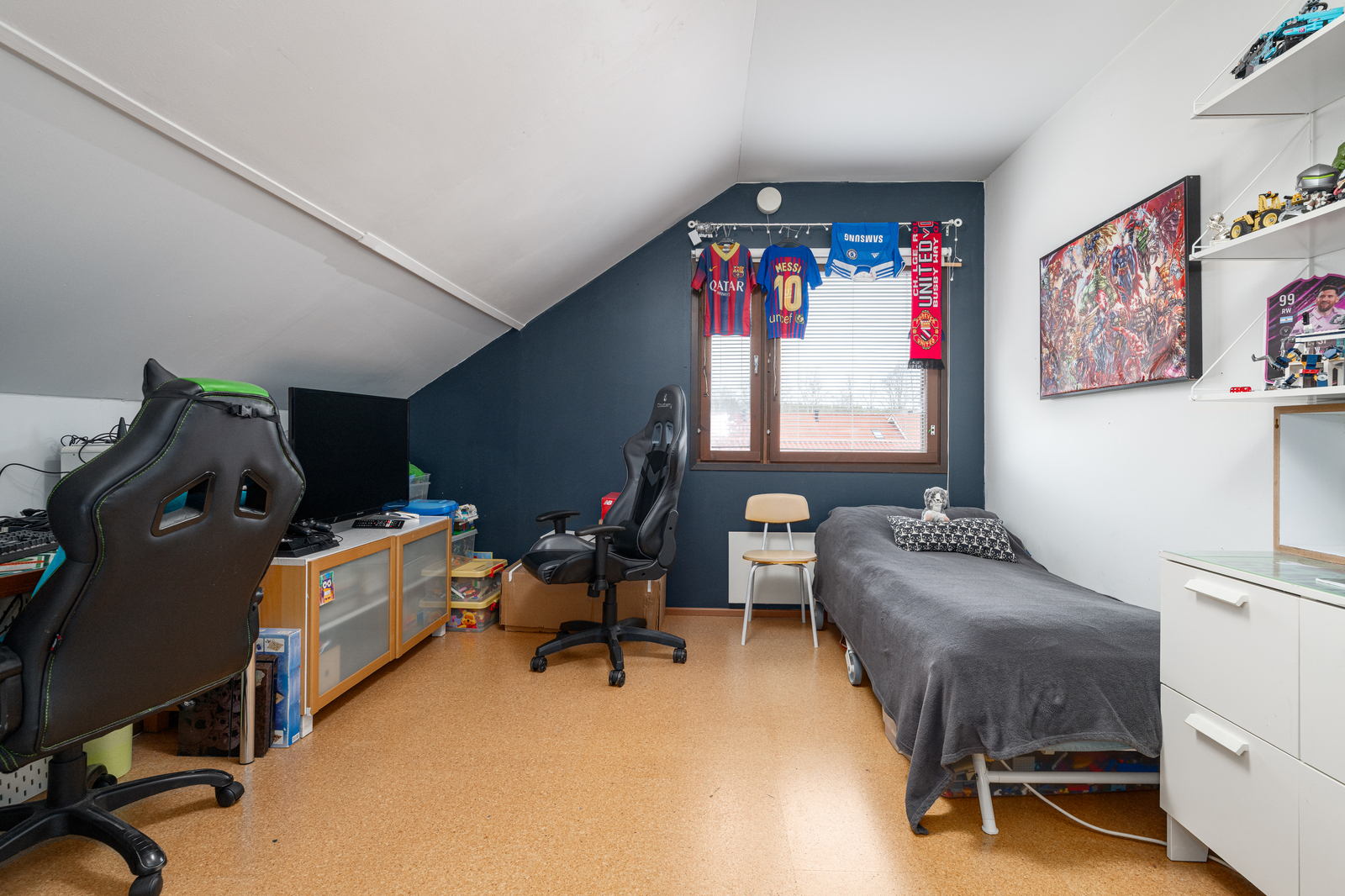 | Makuuhuoneen kuvaus | Lukumäärä: 3, seinät (maali ja tapetti), lattiat (laminaatti ja korkki) |