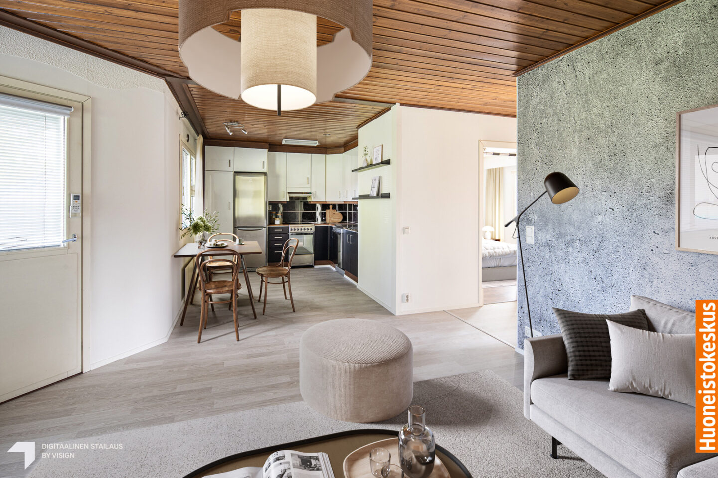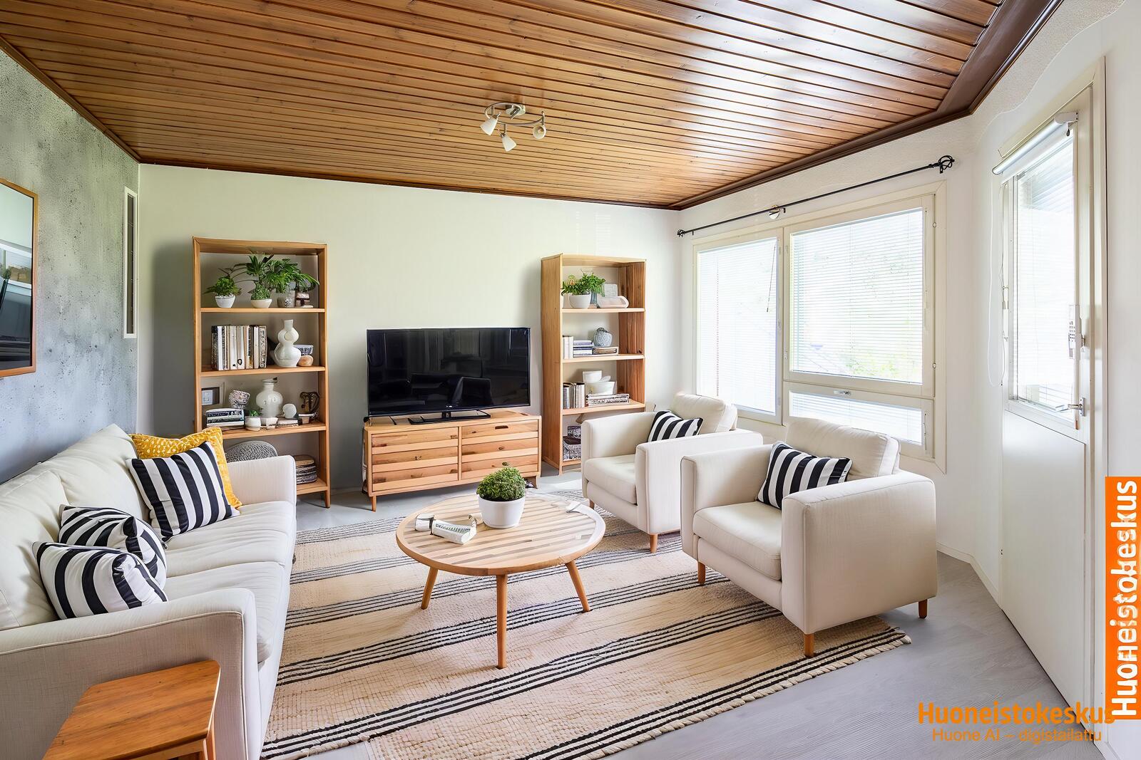 | Tehdyt remontit | Uusi laminaattilattia keittiön, olohuoneen ja eteisen alueelle 5/2024. Uusi astianpesukone. Keittiö, wc, ph ja sauna uusittu 2000 – luvulla. |