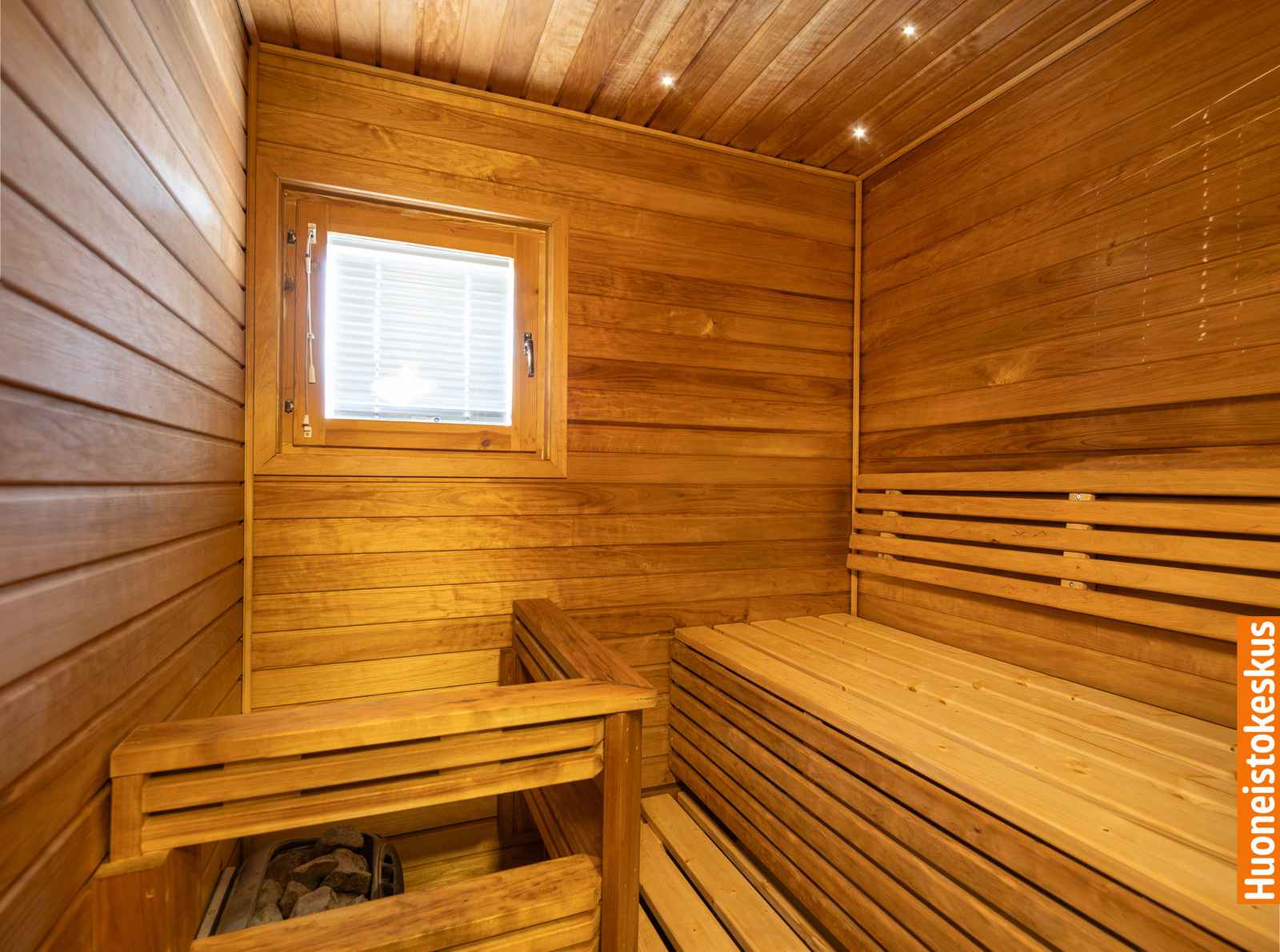 | Saunan kuvaus | Seinät (puu), lattiat (laatta), Sähkökiuas, Lauteita uusittu 5/2024 |
