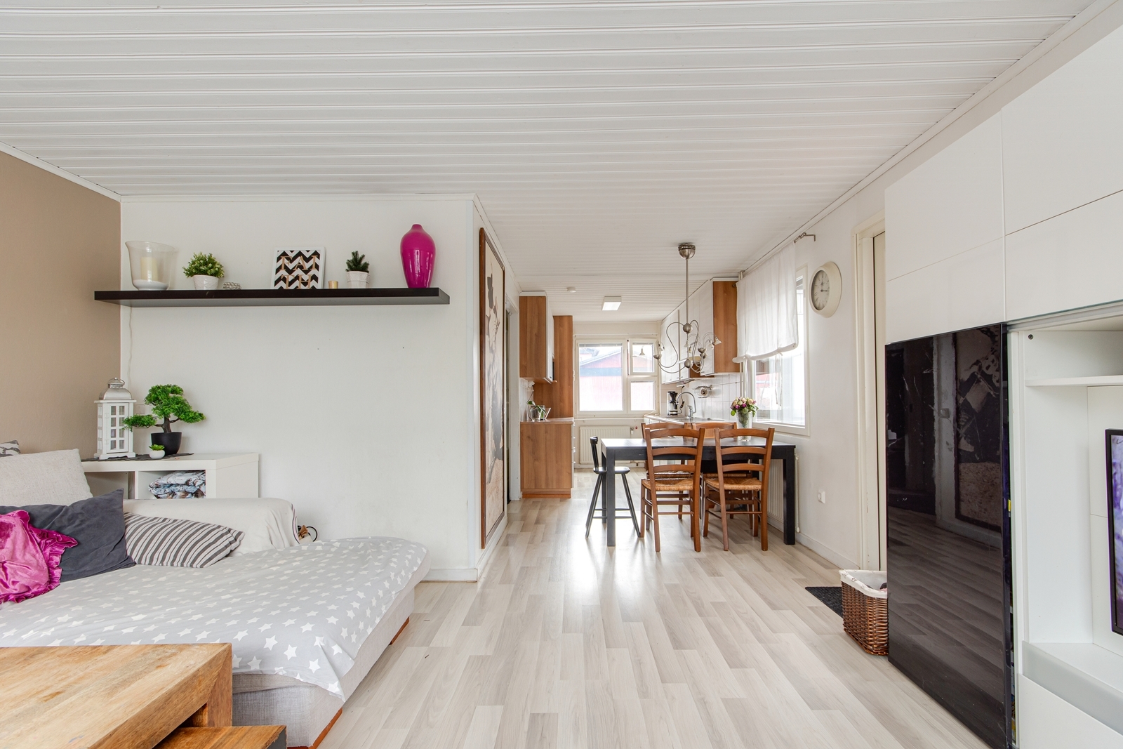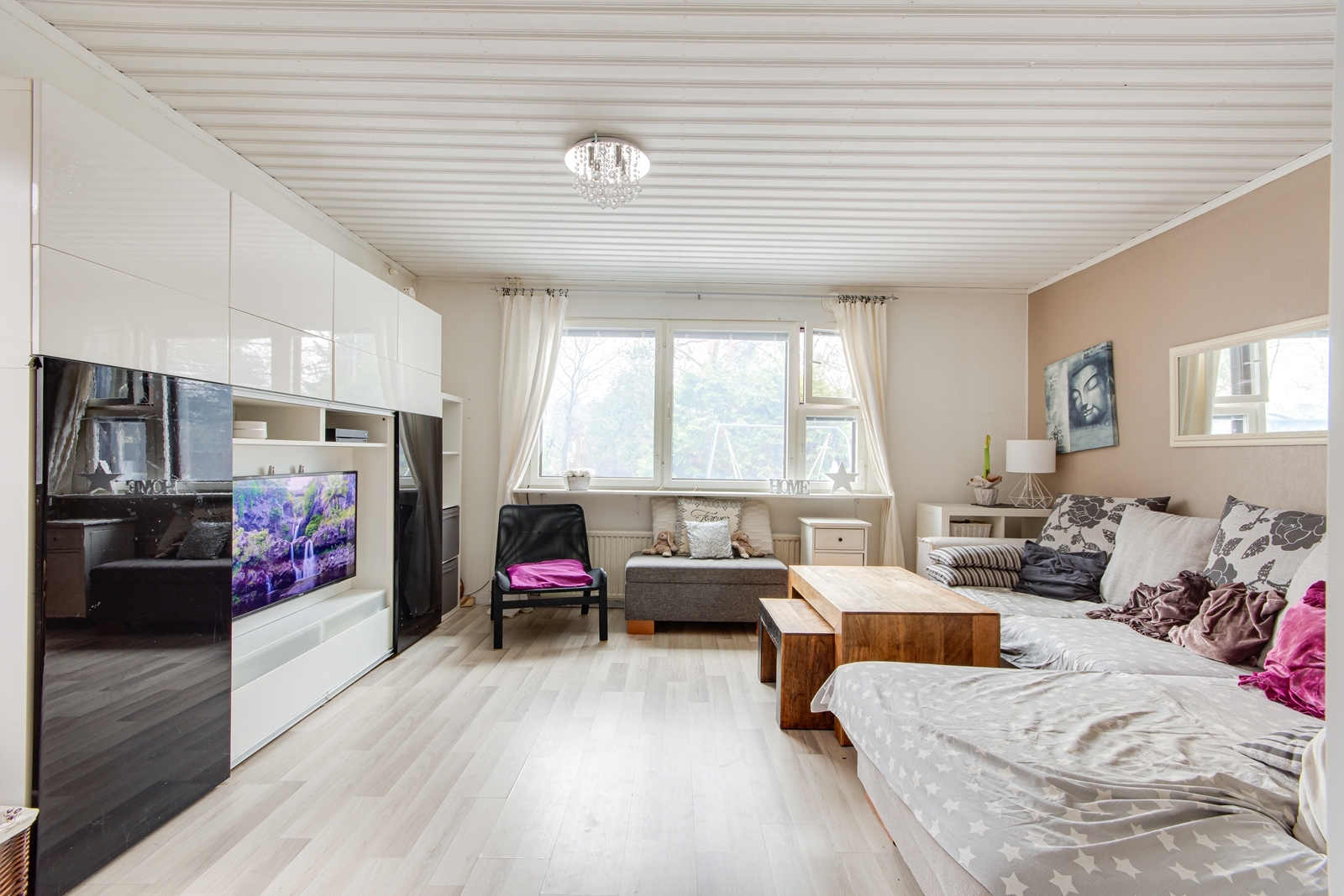 | Olohuoneen kuvaus | Seinät (maali), lattiat (laminaatti) |