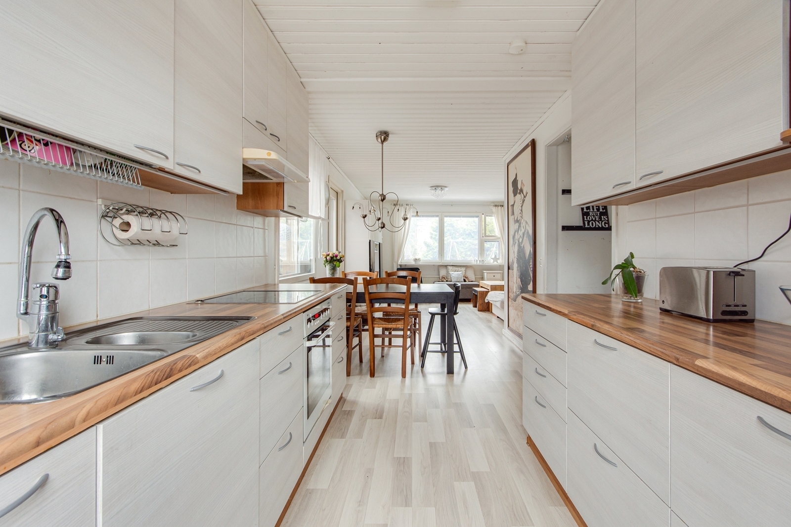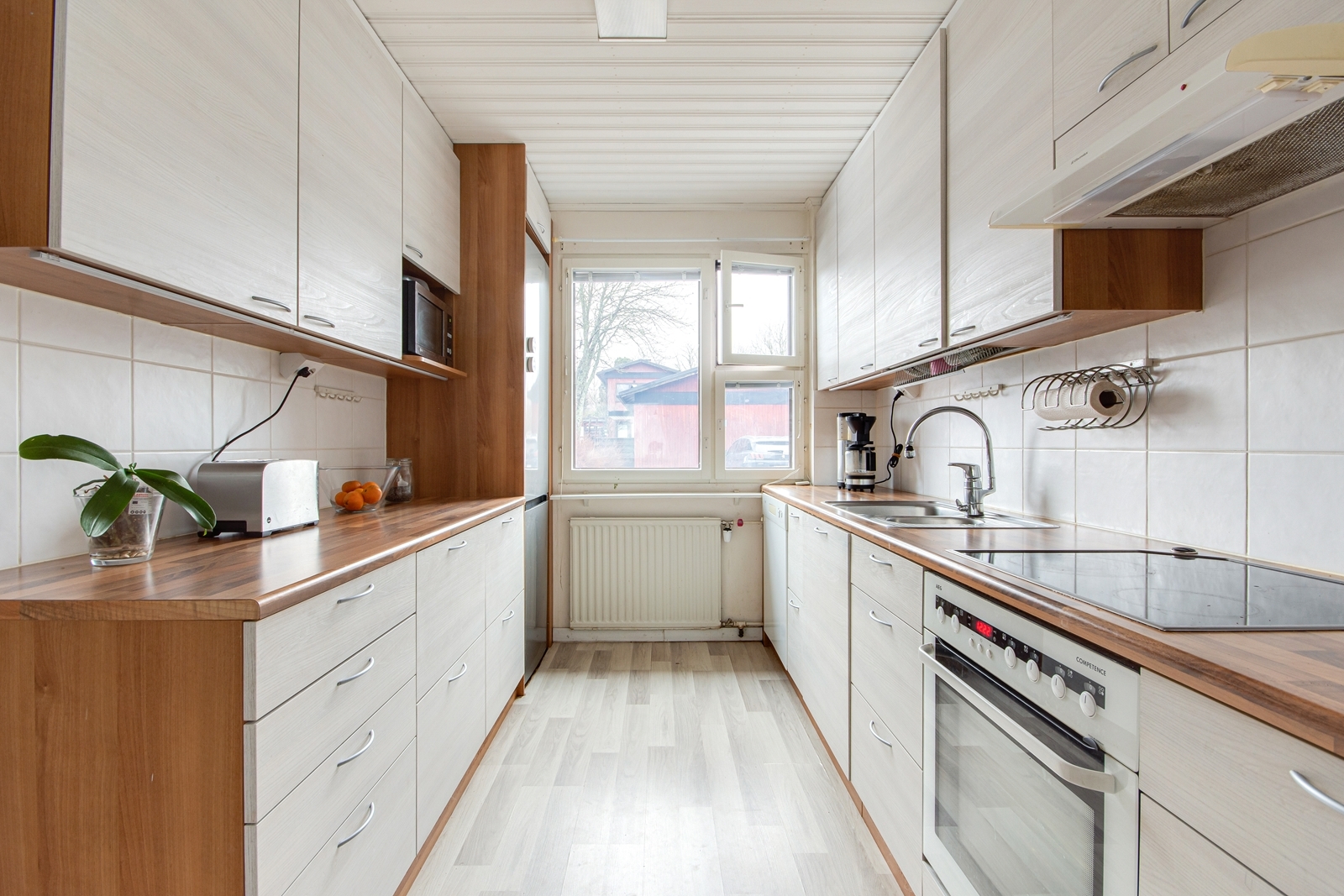 | Keittiön kuvaus | Työtasot (laminaatti), seinät (laatta), lattiat (laminaatti) |