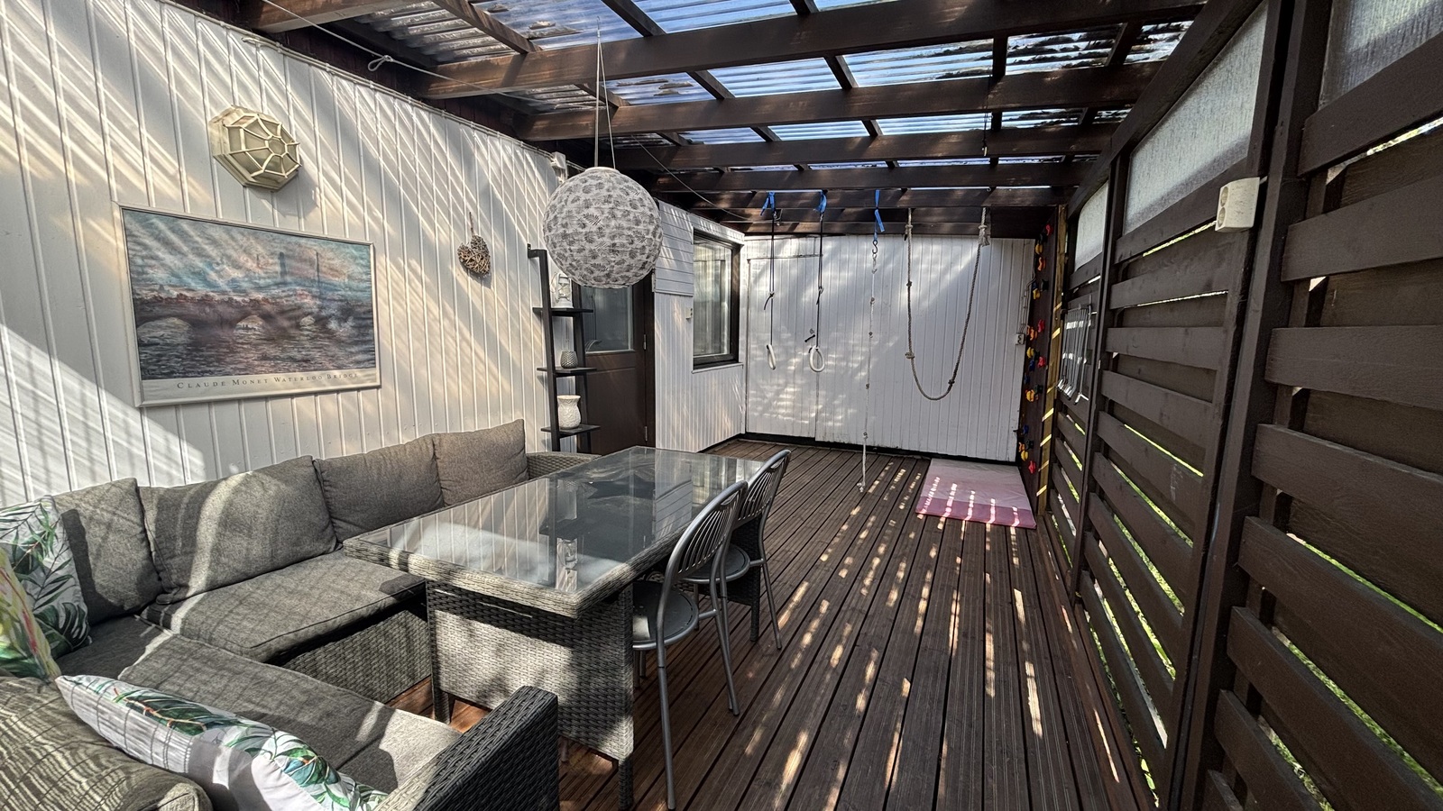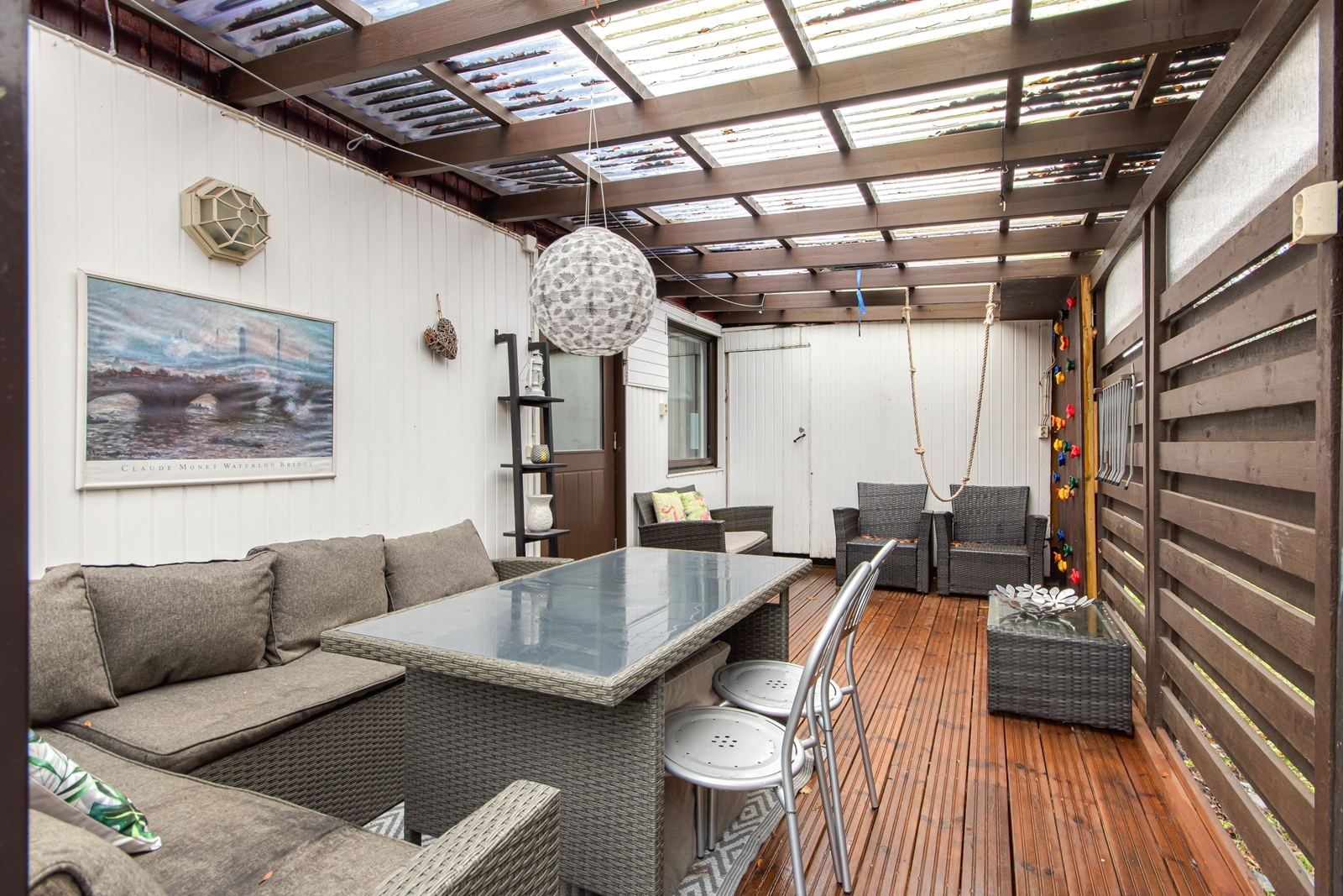 Tässä kodissa on erinomainen pohjaratkaisu, joka tarjoaa kaksi makuuhuonetta, tilavan olohuoneen, keittiön ja ruokailutilan, jotka yhdessä muodostavat toimivan ja viihtyisän kokonaisuuden. Olohuoneesta pääsee suoraan aidatulle piha-alueelle, jossa suuri terassi tarjoaa mainiot puitteet kesäiltojen nautiskeluun.