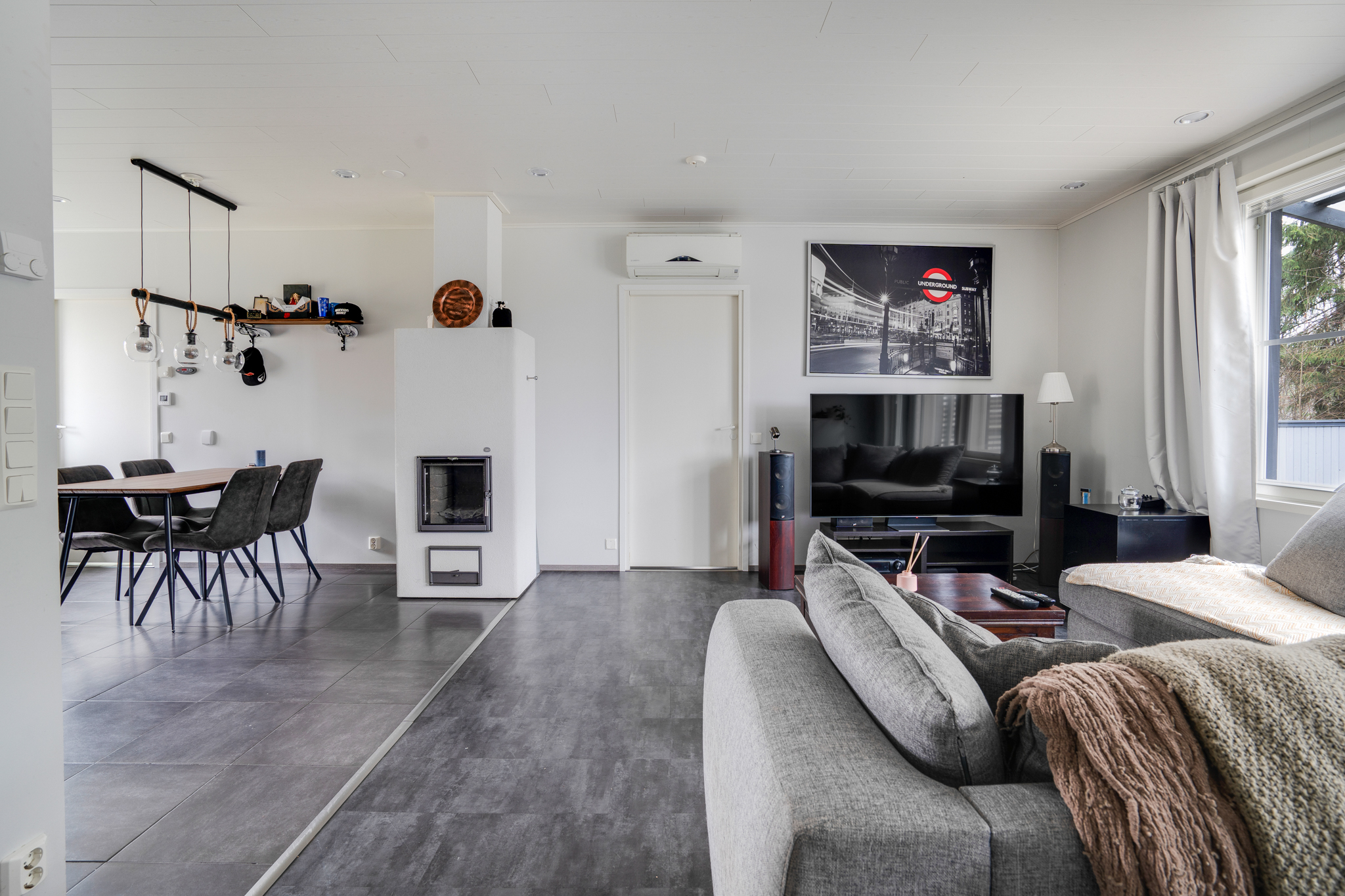 Karhunmäen suositulla asuinalueella maalämmöllä lämpiävä, tien päädystä ja puistoon rajoittuva omakotitalo, jonka lisäksi myös lämmin 27 m² autotallirakennus. Talo on myynnissä ensimmäiseltä omistajalta. Tämän talon parhaita puolia loistavan sijainnin ja lämmitysmuodon lisäksi on hyvä pohjaratkaisu, laadukkaat materiaalit sekä lämmin autotalli. Autotallissa öljyn- ja hiekanerotuskaivo. Autotallin lämmitys tapahtuu lämmityskaapeleilla, joten halutessaan voi autotallista tiputtaa lämmöt kokonaan pois. Sähkönkulutus ollut 12 674 kWh/v kahden hengen taloudella, kun autotallissa pidetty lämmöt 5-10 asteessa ja asuinrakennuksessa ei ole poltettu puuta yhtään.