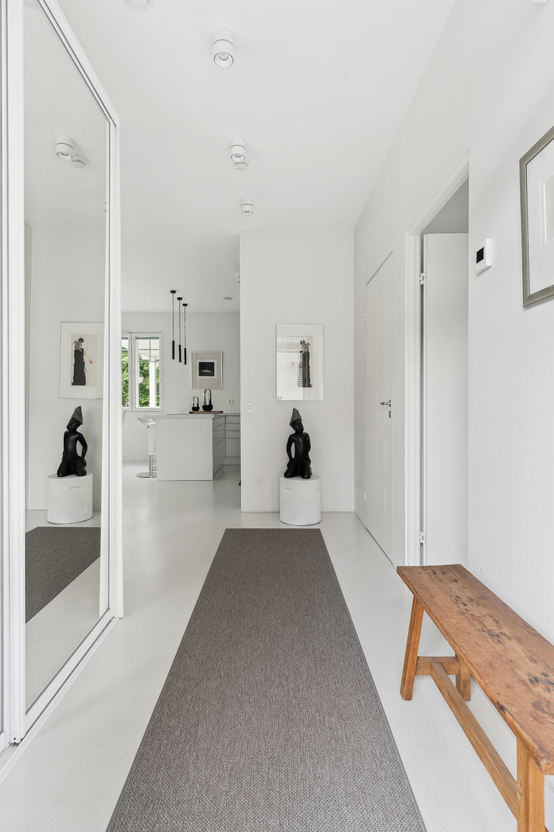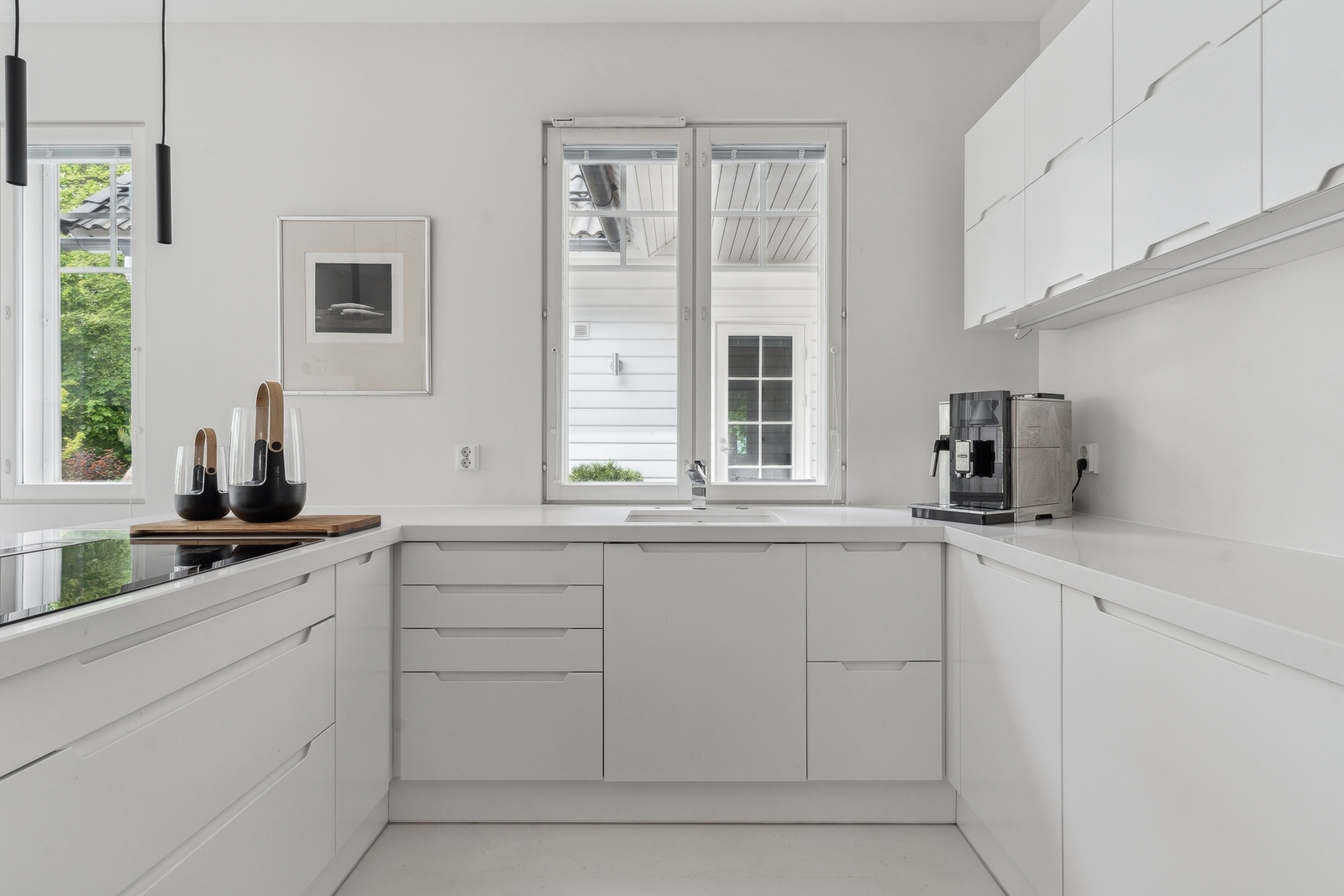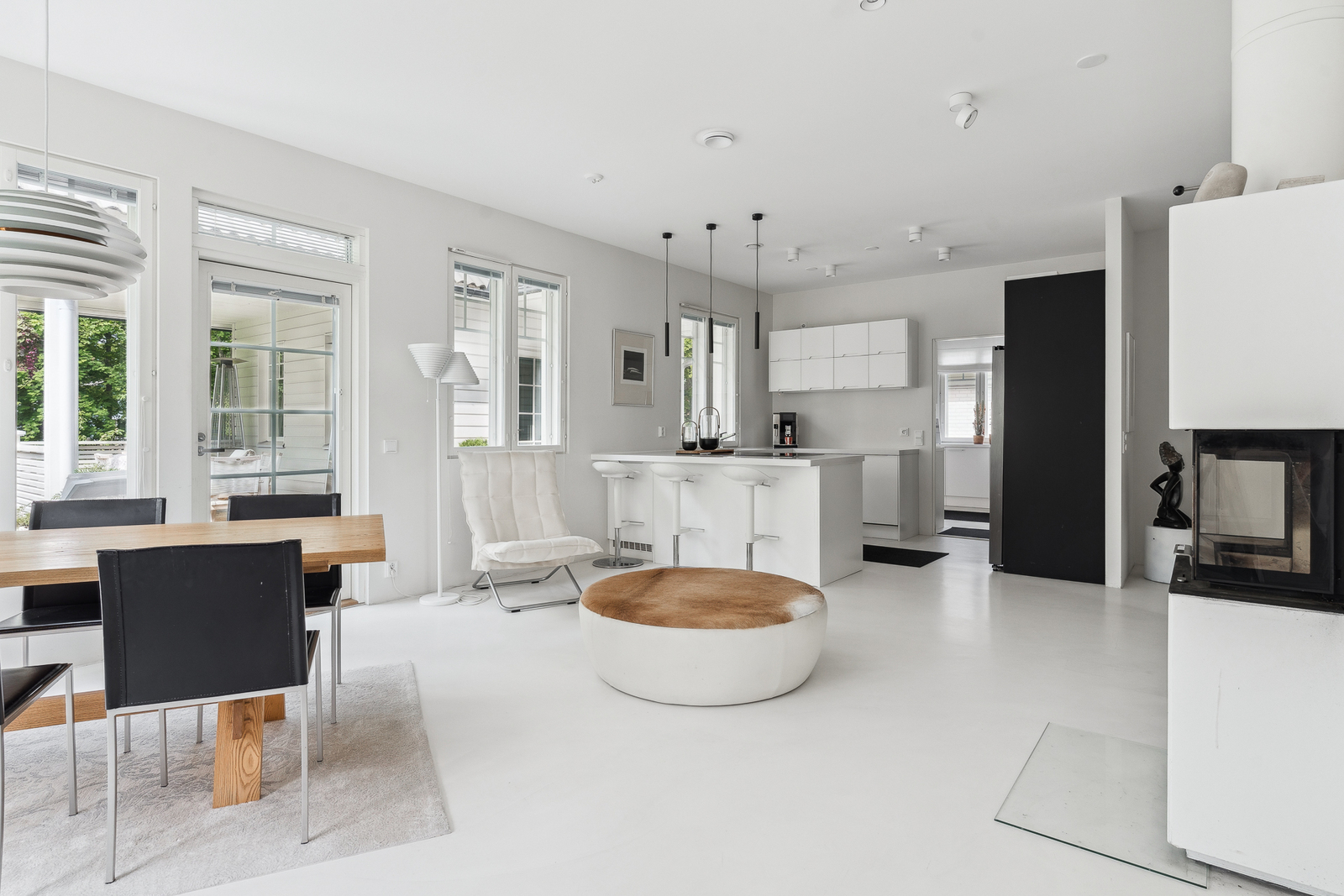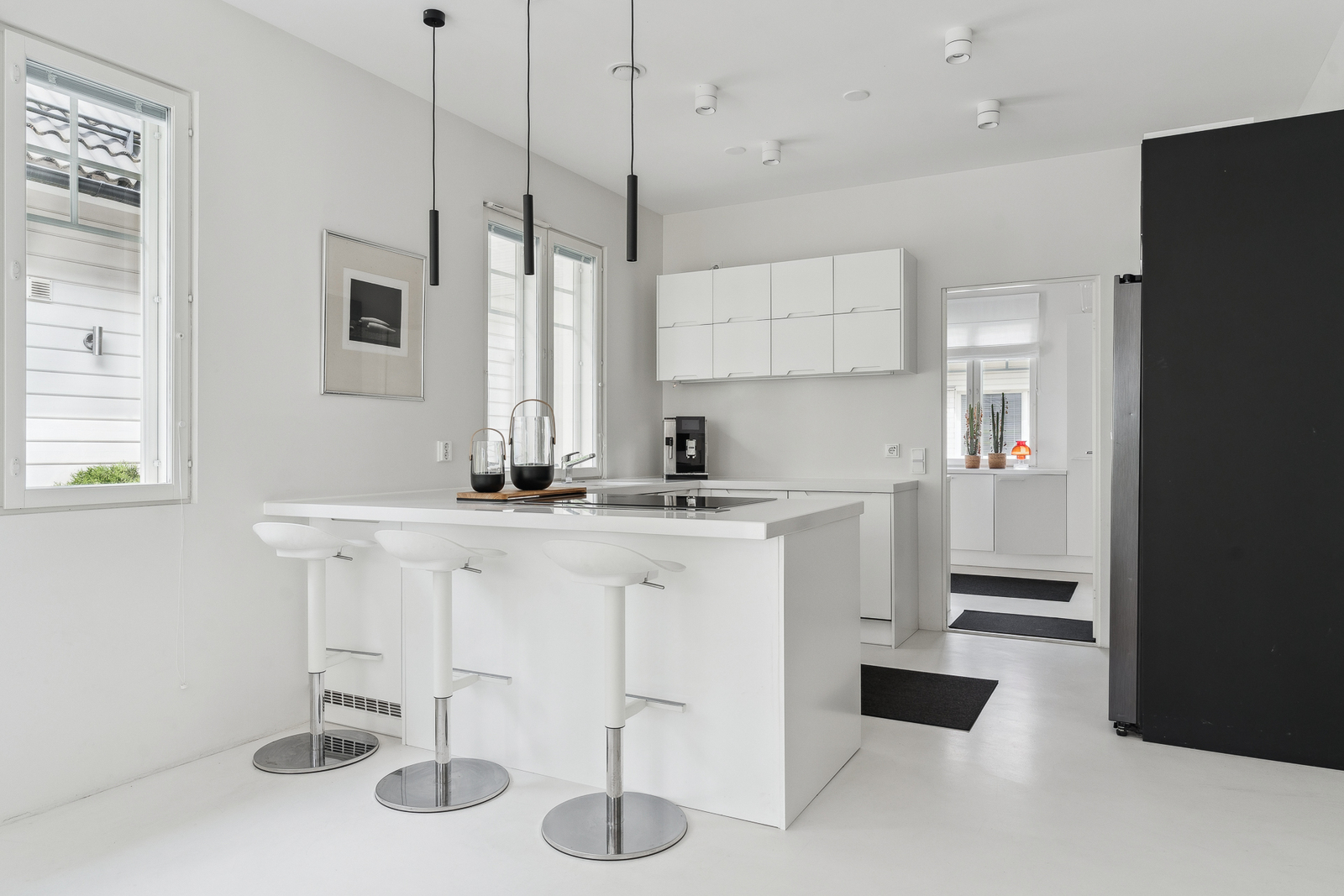 Talon avara pohjaratkaisu ja suuret ikkunat tuovat runsaasti luonnonvaloa sisään. Olohuoneessa on tunnelmallinen takka, ja keittiössä laadukkaat kvartsikomposiittitasot sekä modernit kodinkoneet tekevät ruoanlaitosta nautinnon. Kaksi makuuhuonetta ja erillinen vaatehuone tarjoavat runsaasti säilytystilaa, kun taas sauna ja kylpyhuone lattialämmityksellä tarjoavat rentouttavan paikan arjen kiireiden keskellä.