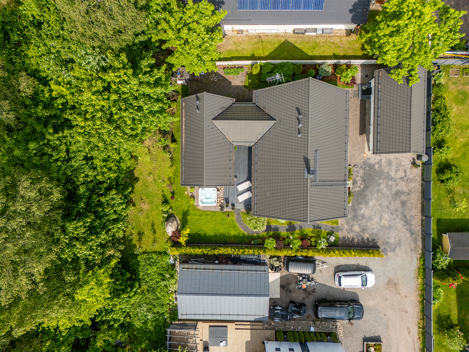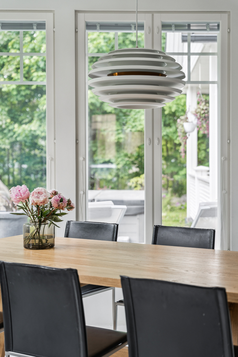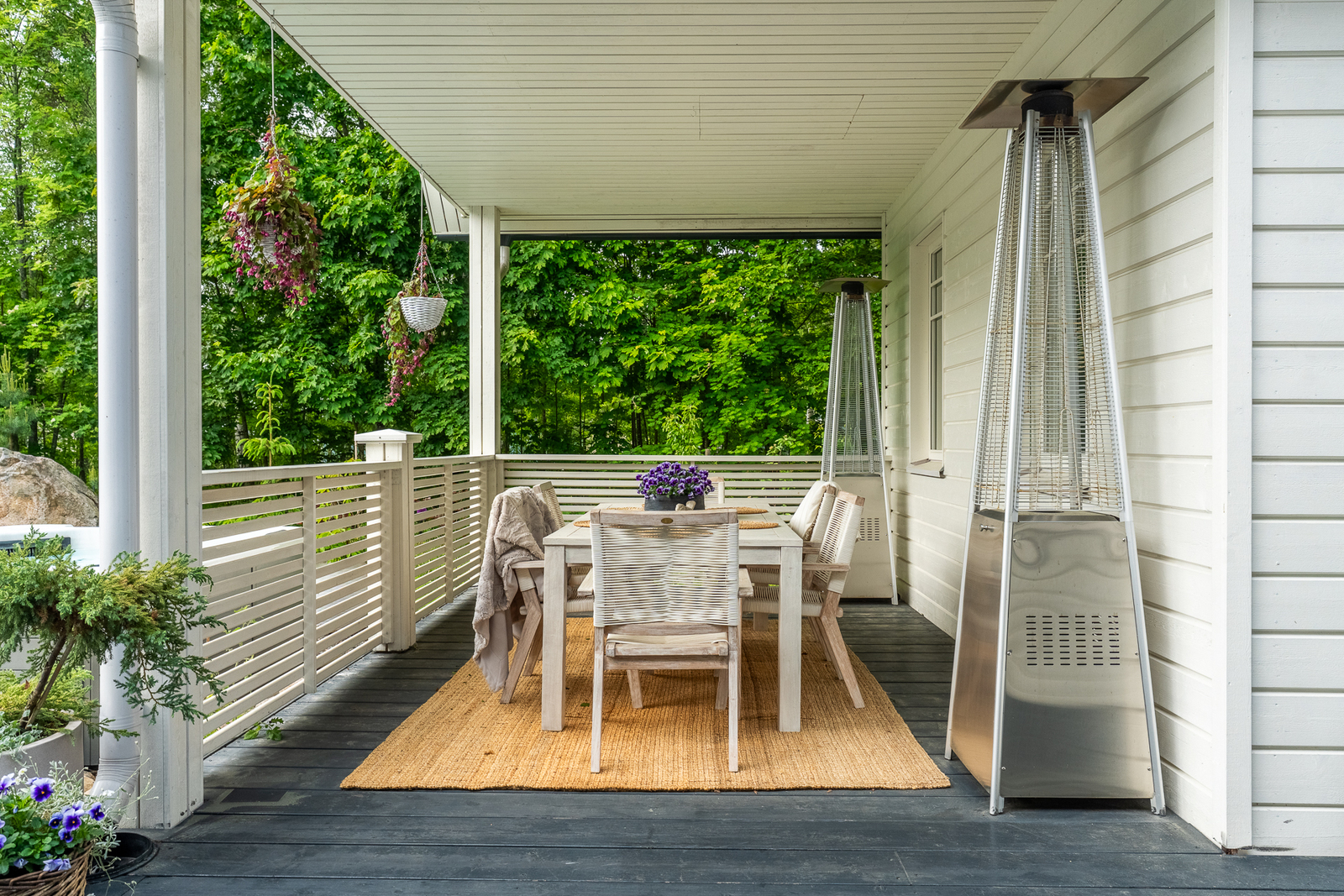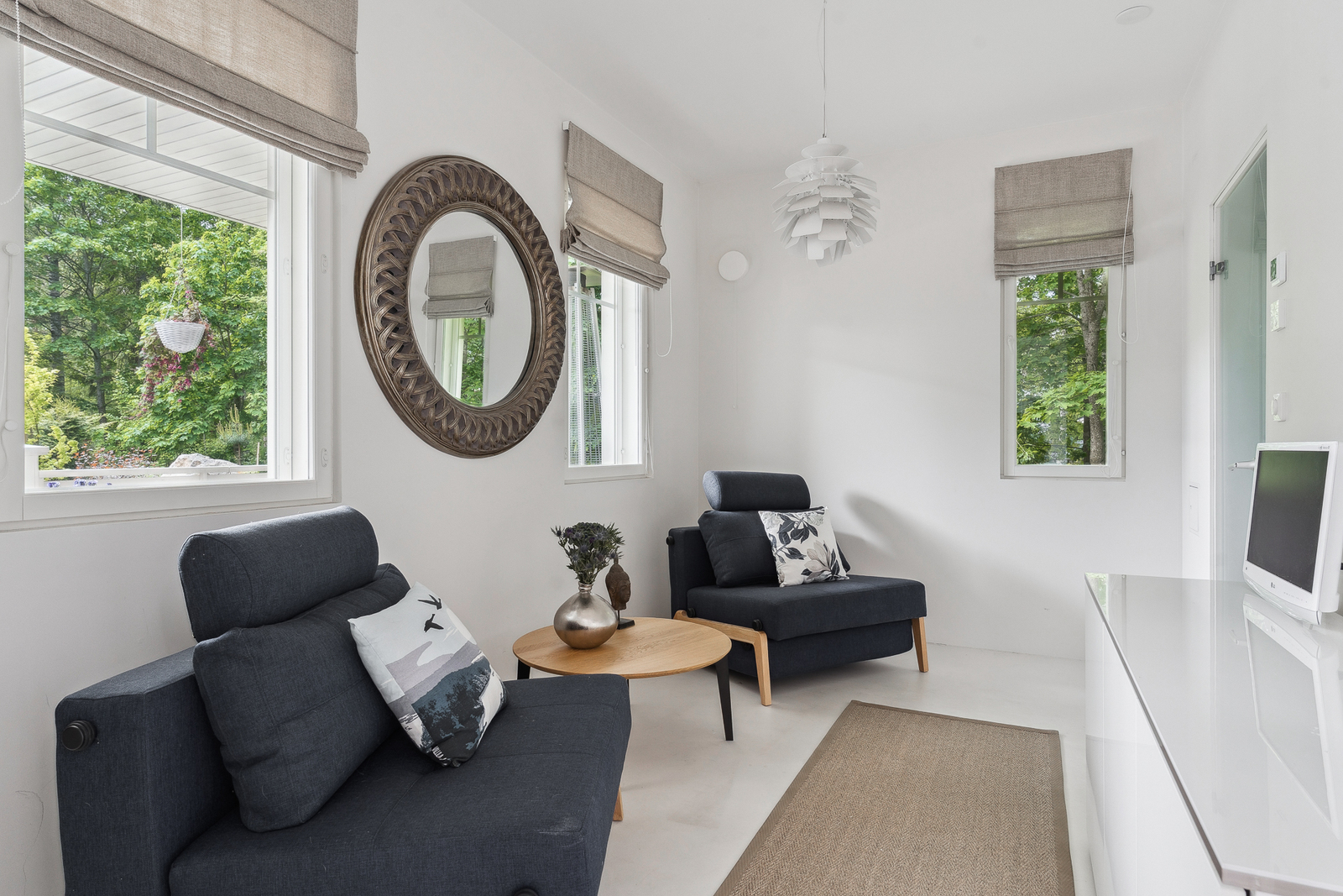 Pihapiiristä löytyy myös erillinen saunarakennus sekä autokatos/varastorakennus. Ulkona on tilava terassi, joka kutsuu viettämään aikaa perheen ja ystävien kanssa. Sijainti on erinomainen, sillä läheltä löytyvät niin koulut, puistot kuin hyvät julkiset liikenneyhteydetkin – bussipysäkki, juna-asema ja lentokenttä ovat kaikki helposti saavutettavissa.