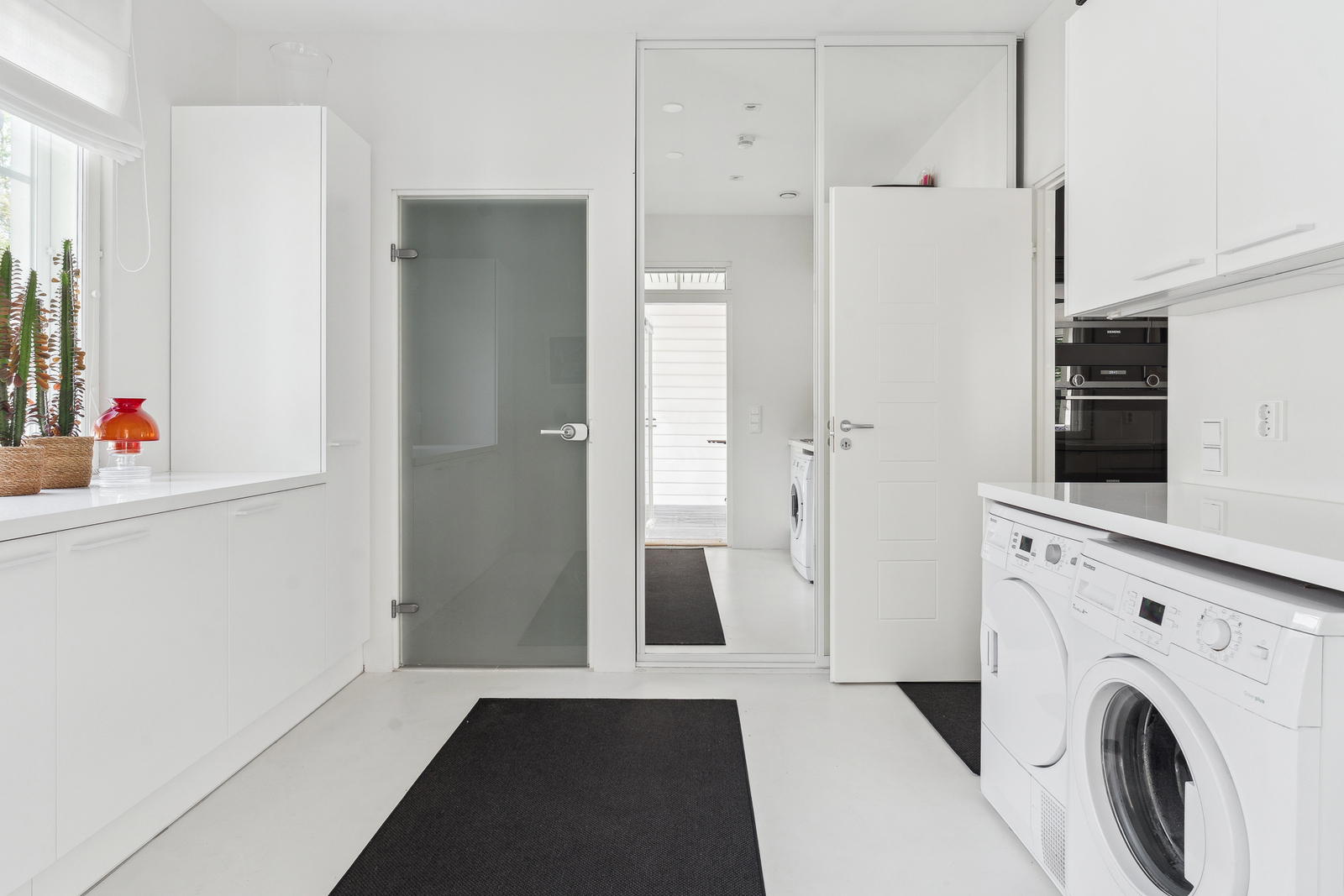 Pesuallas, lattiakaivo, lattialämmitys, pesukoneliitäntä ja pöytätaso, lattiat (betoni), seinät (maali) |