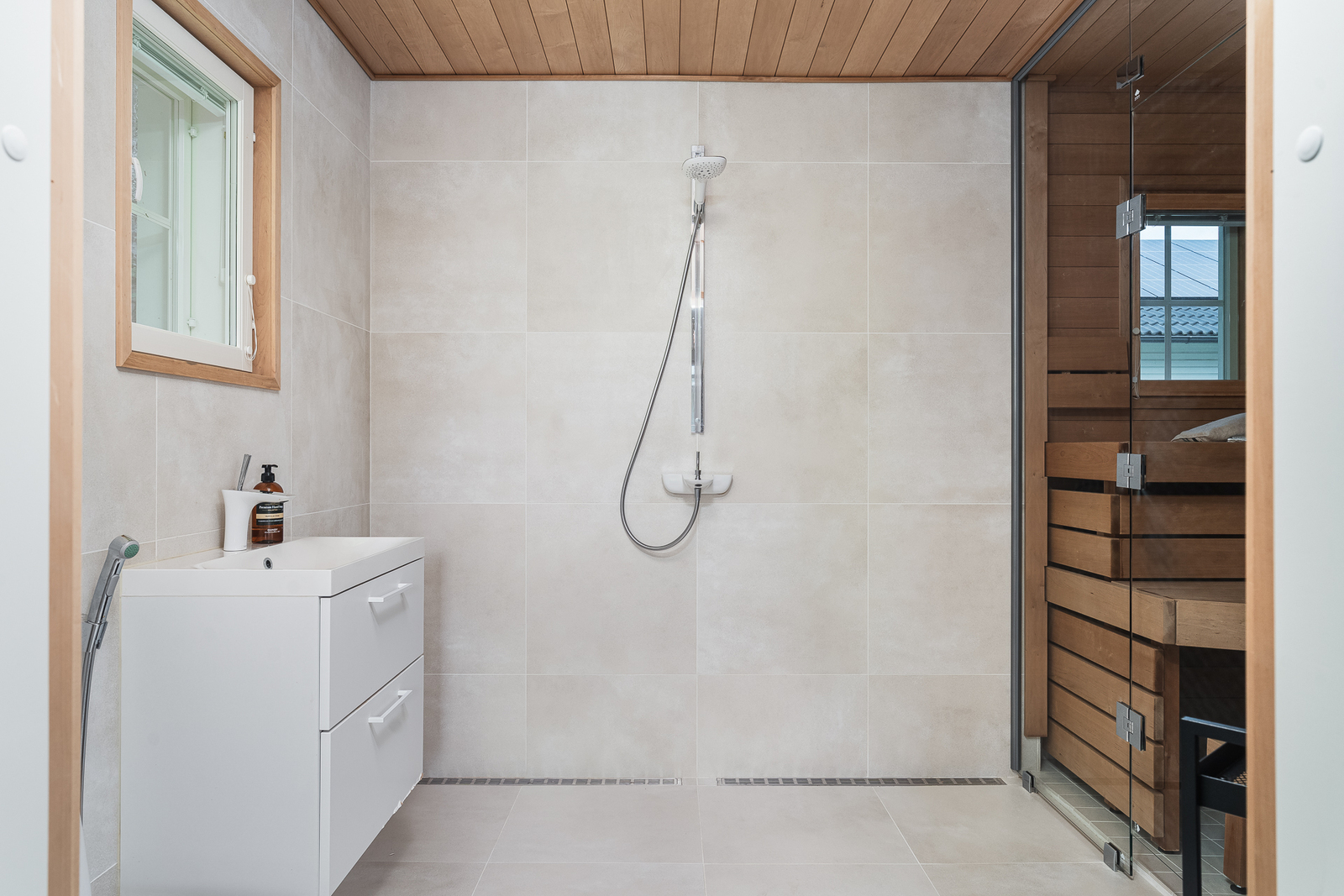 Suihku ja lattialämmitys, seinät (kaakeli), lattiat (laatta) |