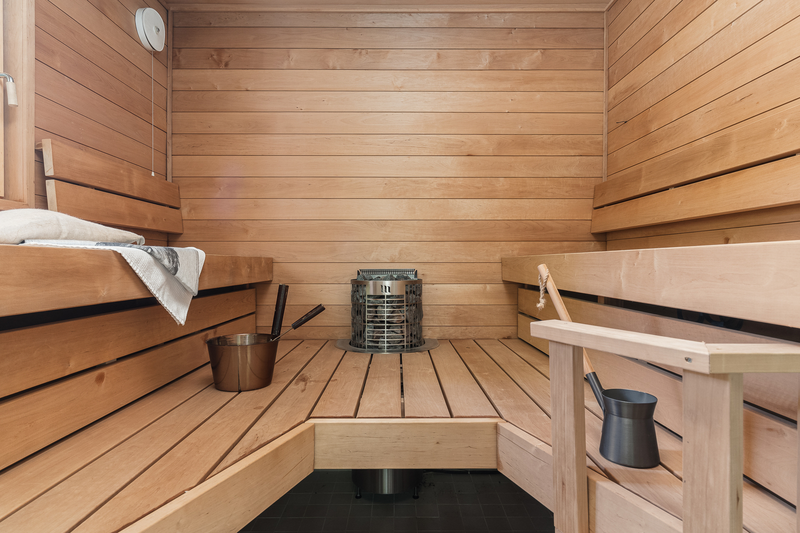 Seinät (paneeli), lattiat (betoni), Sähkökiuas |