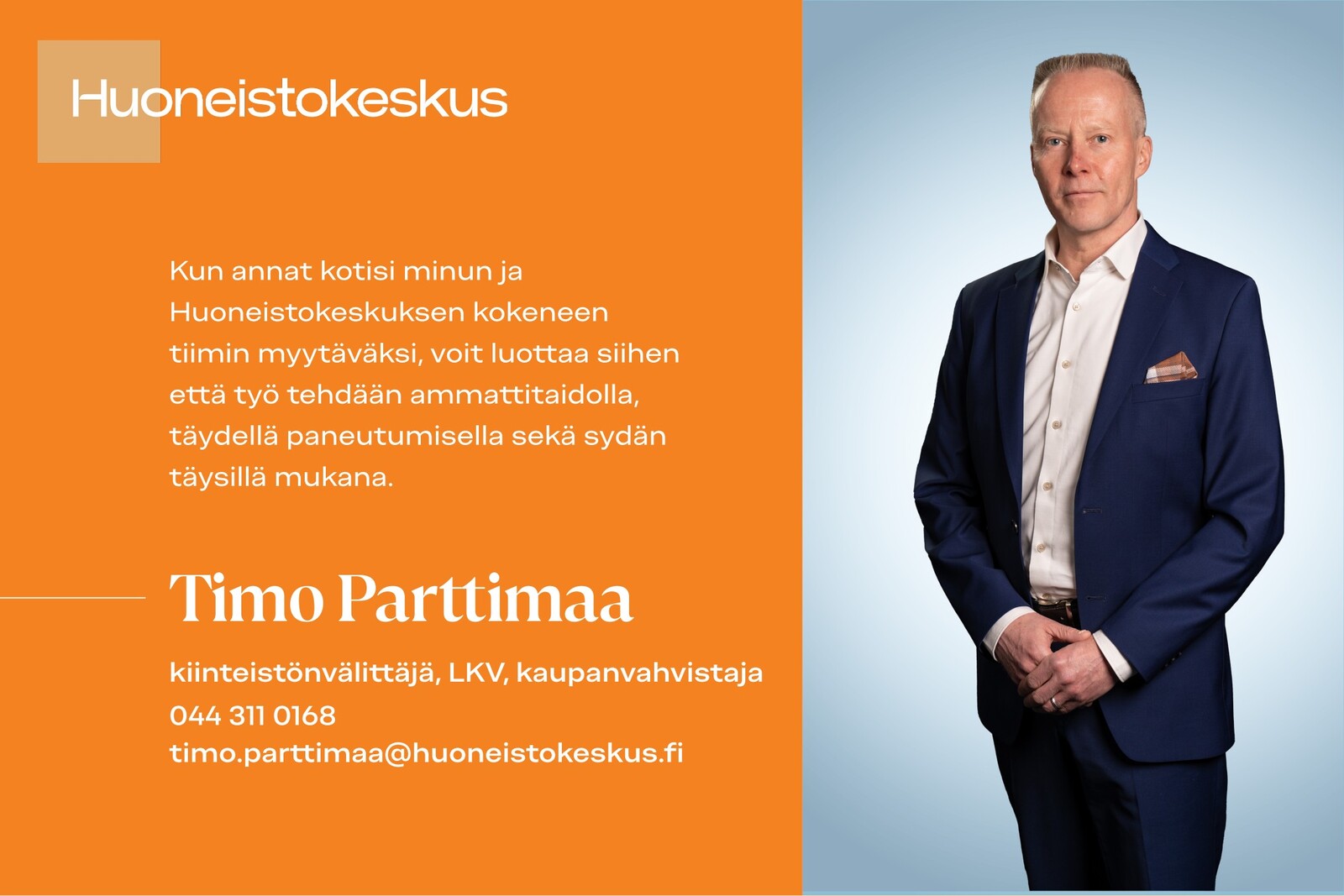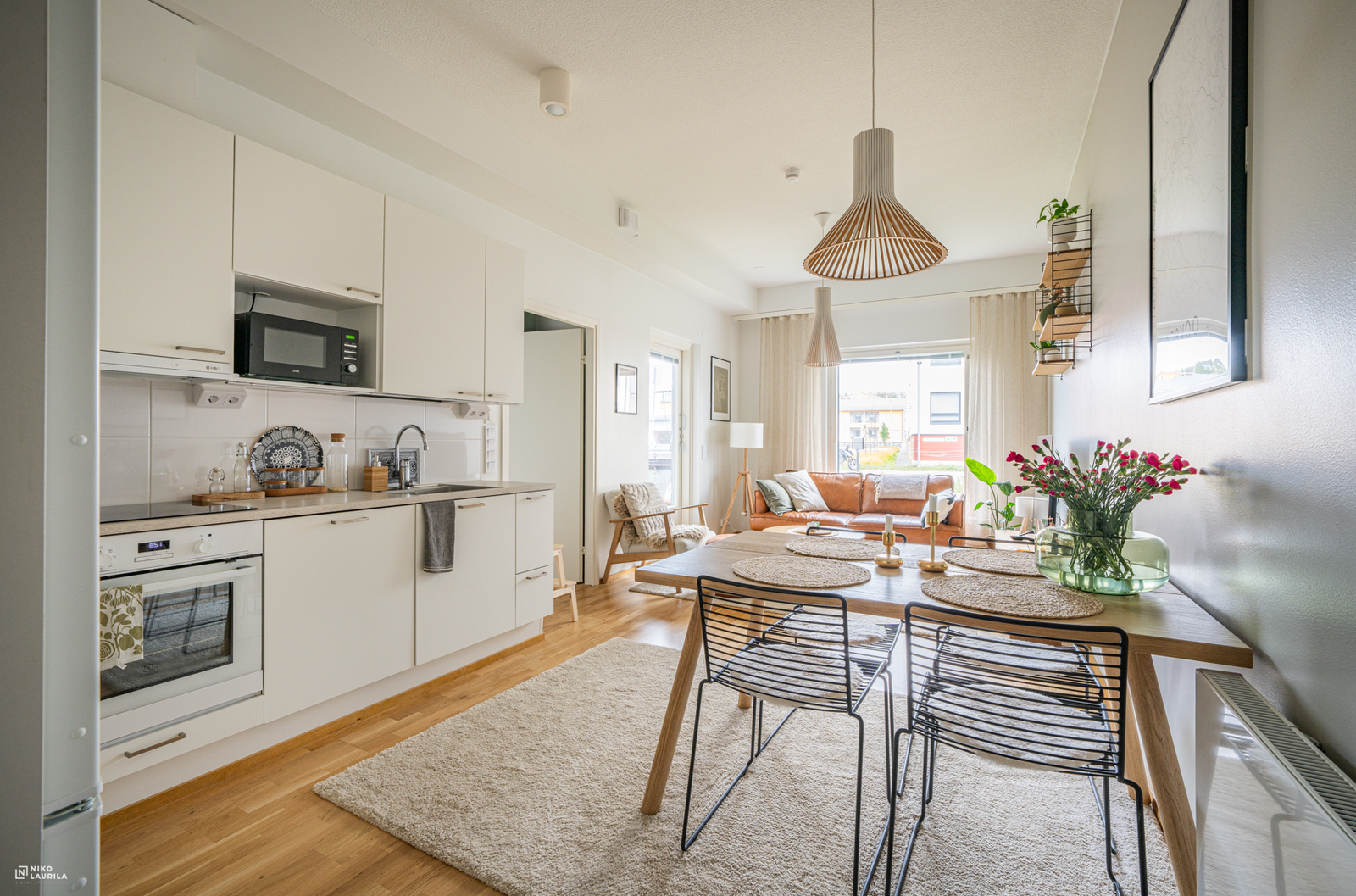 Asuinrakennuksessa on huomioitu esteetön liikkuminen loivalla luiskalla, hissistä portaiden rinnalla, kuvallisella ovipuhelinjärjestelmällä sekä riittävän leveistä oviaukoista ja sopivan kokoisesta asuintilasta. Liikkumista helpottaa myös sähköiset ovipumput rakennuksen ulko-ovissa. Huoneiston vapautuminen 31.8.2025 mennessä.
