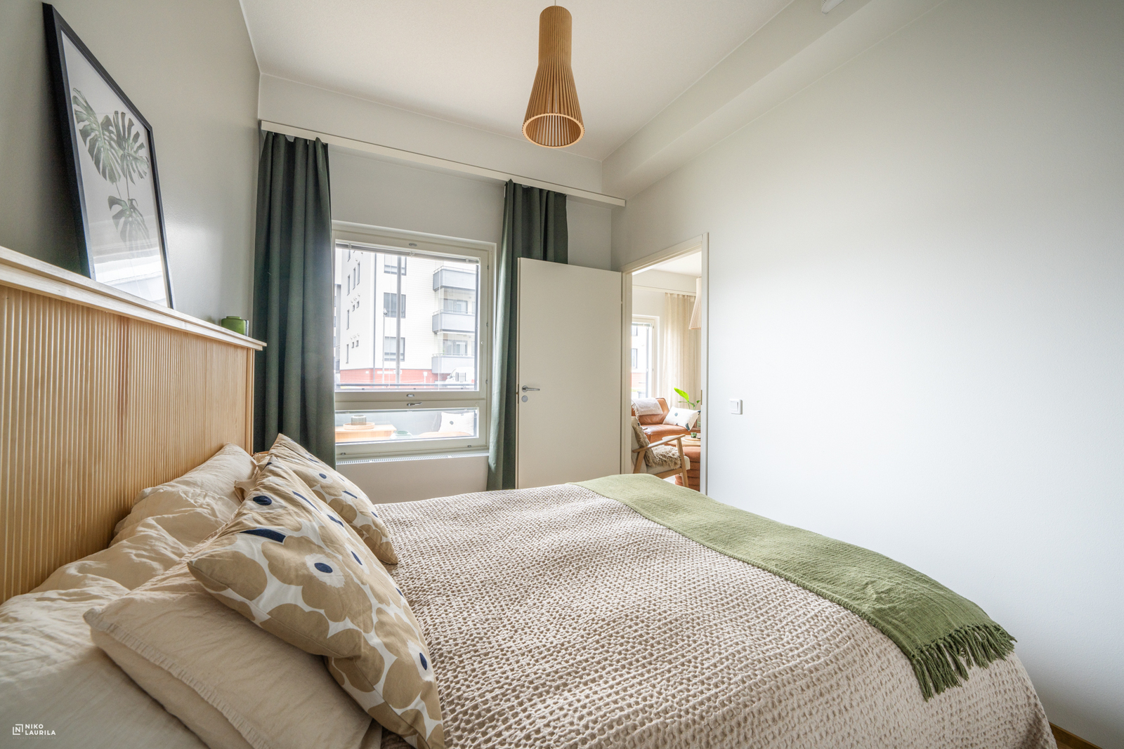 Lukumäärä: 1, seinät (maali), lattiat (parketti), Makuuhuoneessa reilusti kaappitilaa vaatesäilytykseen. |