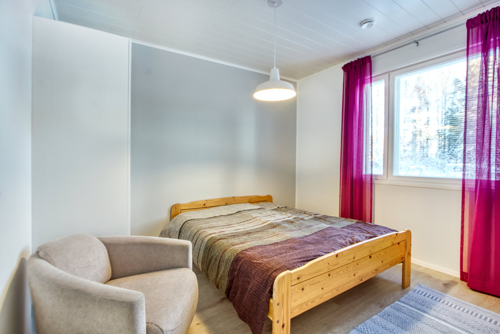 | Makuuhuoneen kuvaus | Lukumäärä: 3, seinät (maali), lattiat (laminaatti), Katoissa mdf paneeli. |
