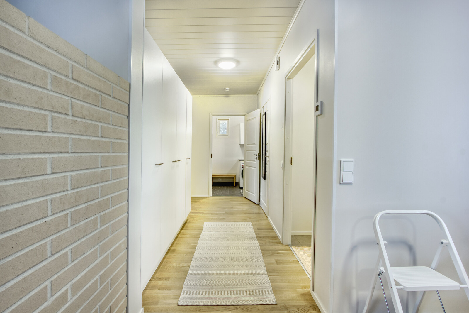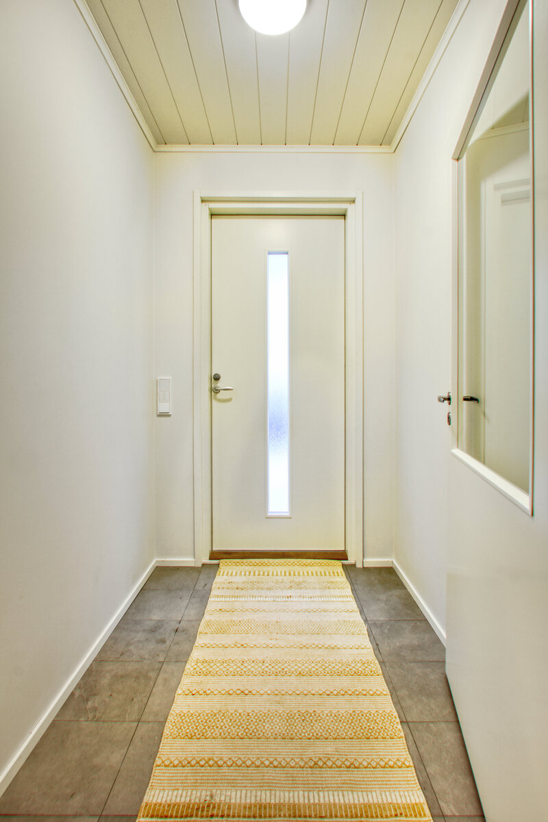 | Tilojen kuvaus | Tuulikaapin lattiassa laatta, seinät maalattu ja katossa mdf paneeli. Eteisen lattiassa laminaatti, seinät maalattu ja katossa mdf paneeli. |
