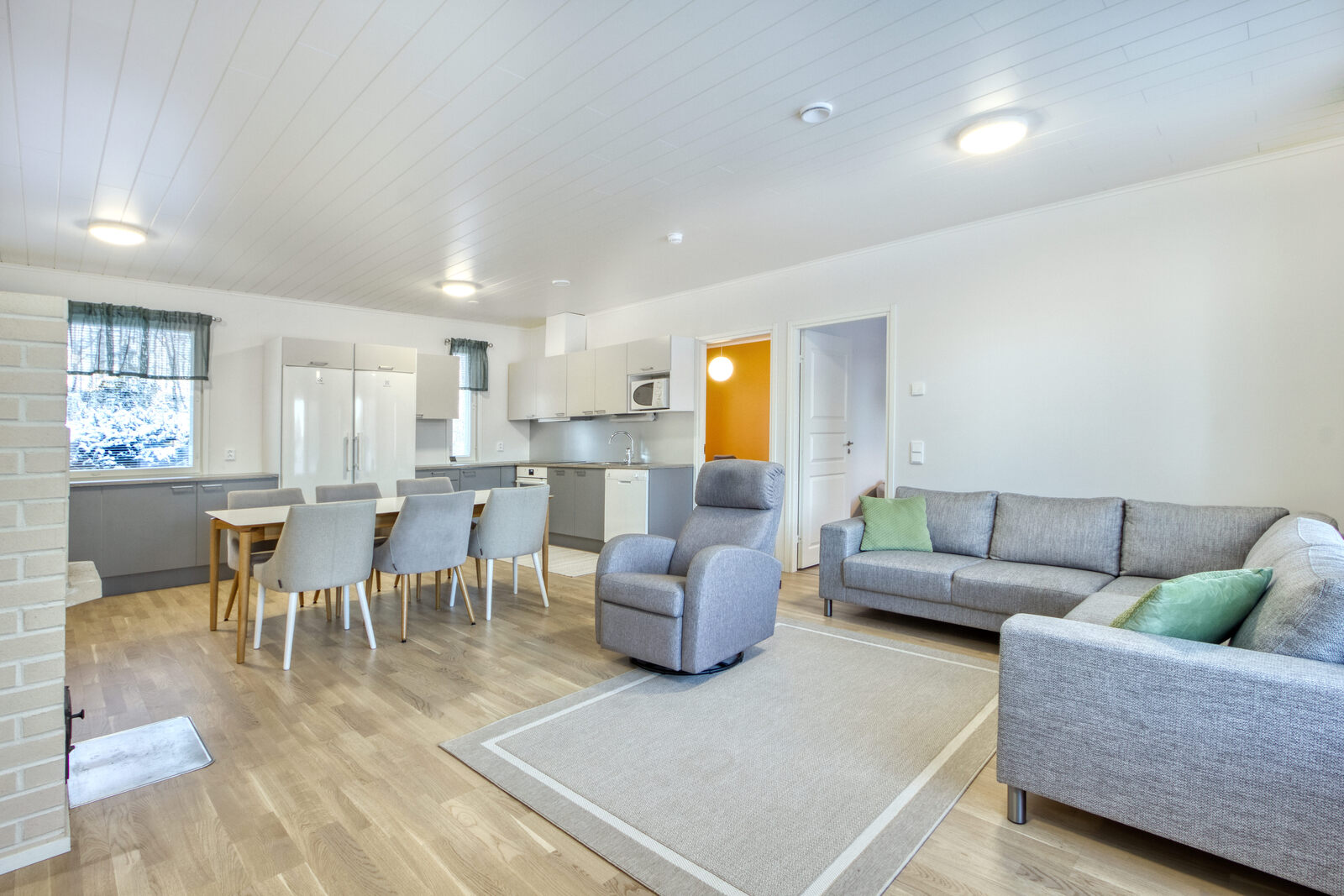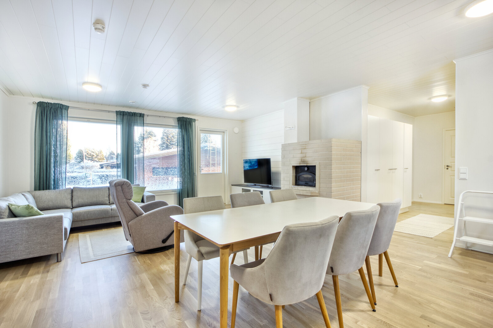 Tässä valoisassa ja avarassa kodissa on kolme hyvänkokoista makuuhuonetta, talon keskellä tilava olohuone keittiö yhdistelmä, jossa paikka ruokailuryhmälle, tilassa puulämmitteinen leivinuuni, jossa paistat, niin piirakat kuin pullatkin.