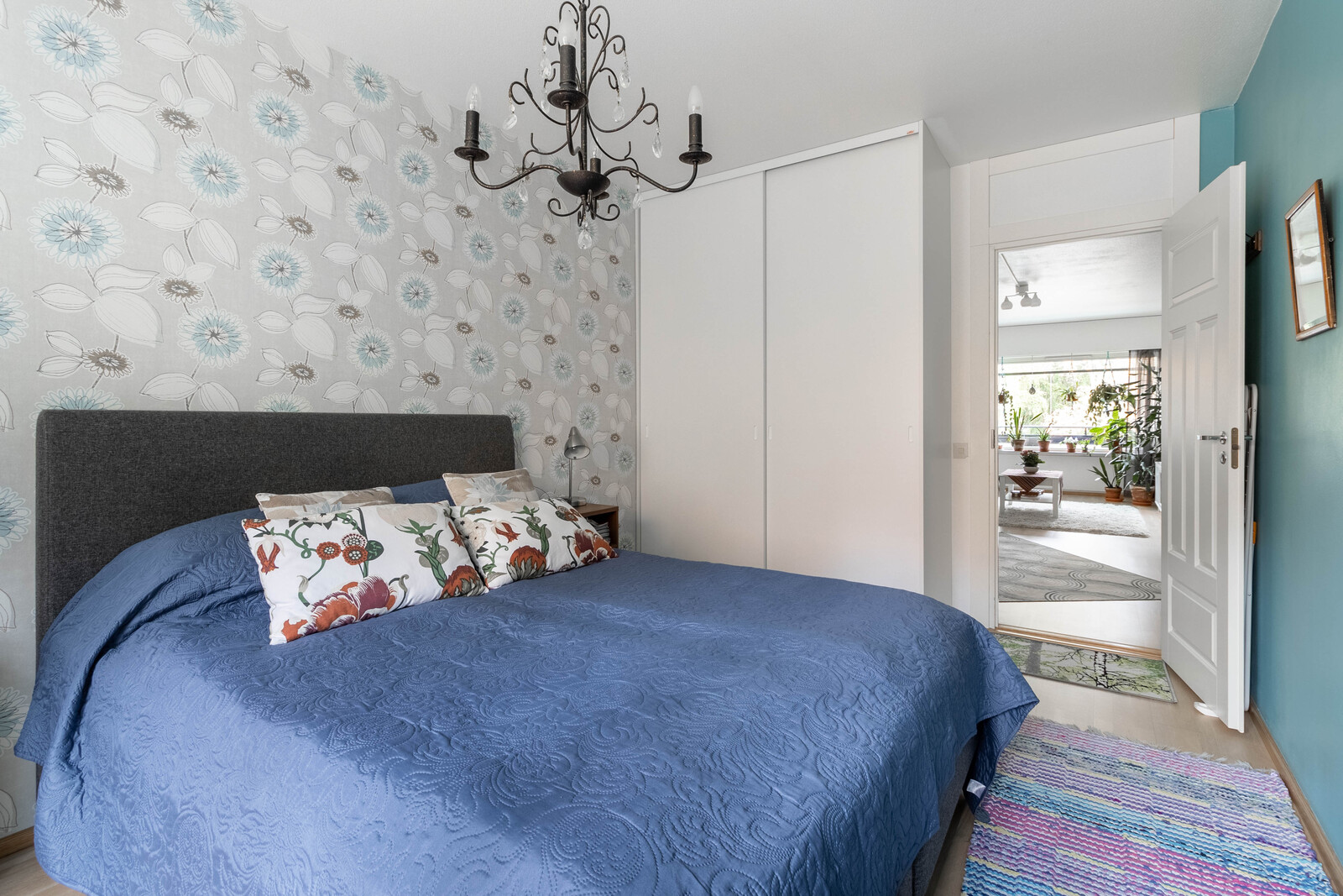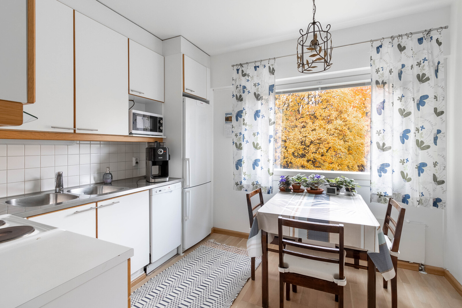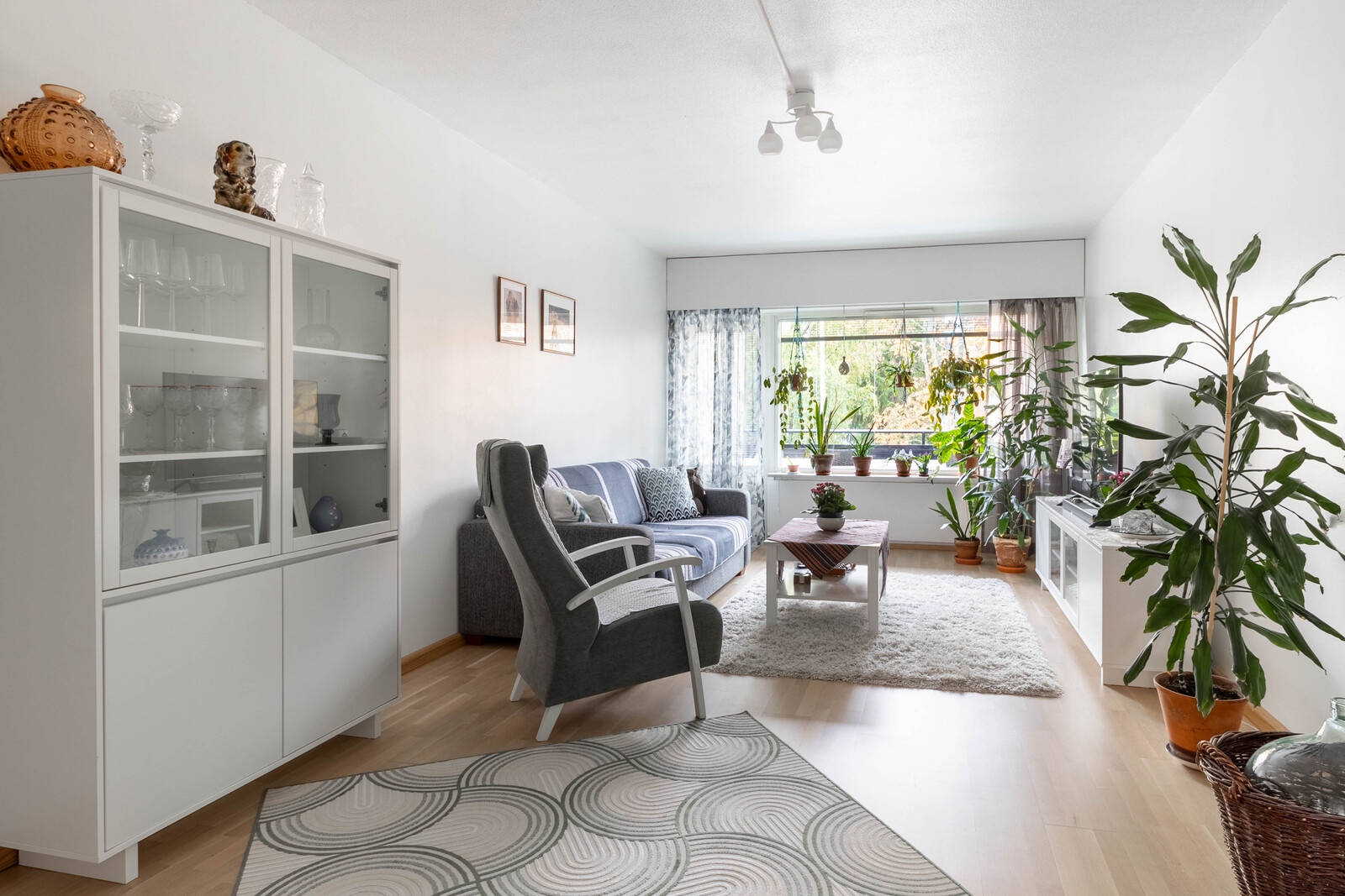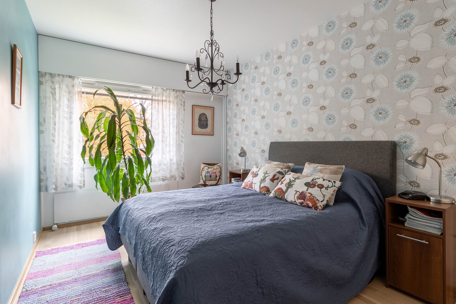 Tilavat ja viihtyisät huoneet, keittiön runsaat kaappitilat, on tilaa ruokapöydälle ja kokkailulle, makuuhuoneeseen mahtuu isompikin vuode yöpöytineen, erittäin iso olohuone vapaasti sisustettavaksi, putkiremontin yhteydessä remontoitu raikas kylpyhuone ja toimiva pohjaratkaisu luovat erinomaiset puitteet täällä asumiseen. Asunnossa on tehty matkan varrella pientä pintaremonttia ja kodissa on tyylikäs, rauhallinen värimaailma. Huoneistosta on ihanan vehreät maisemat, keittiöstä ja makuuhuoneesta näkyy kauniiseen puistoon ja ikkunat ovat kahteen ilmansuuntaan.
