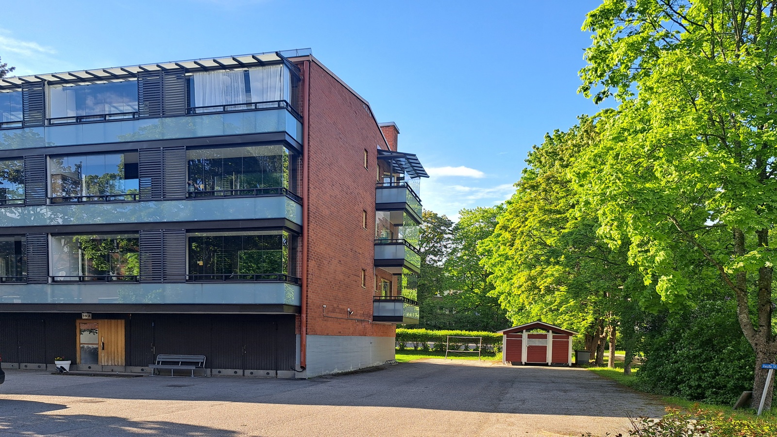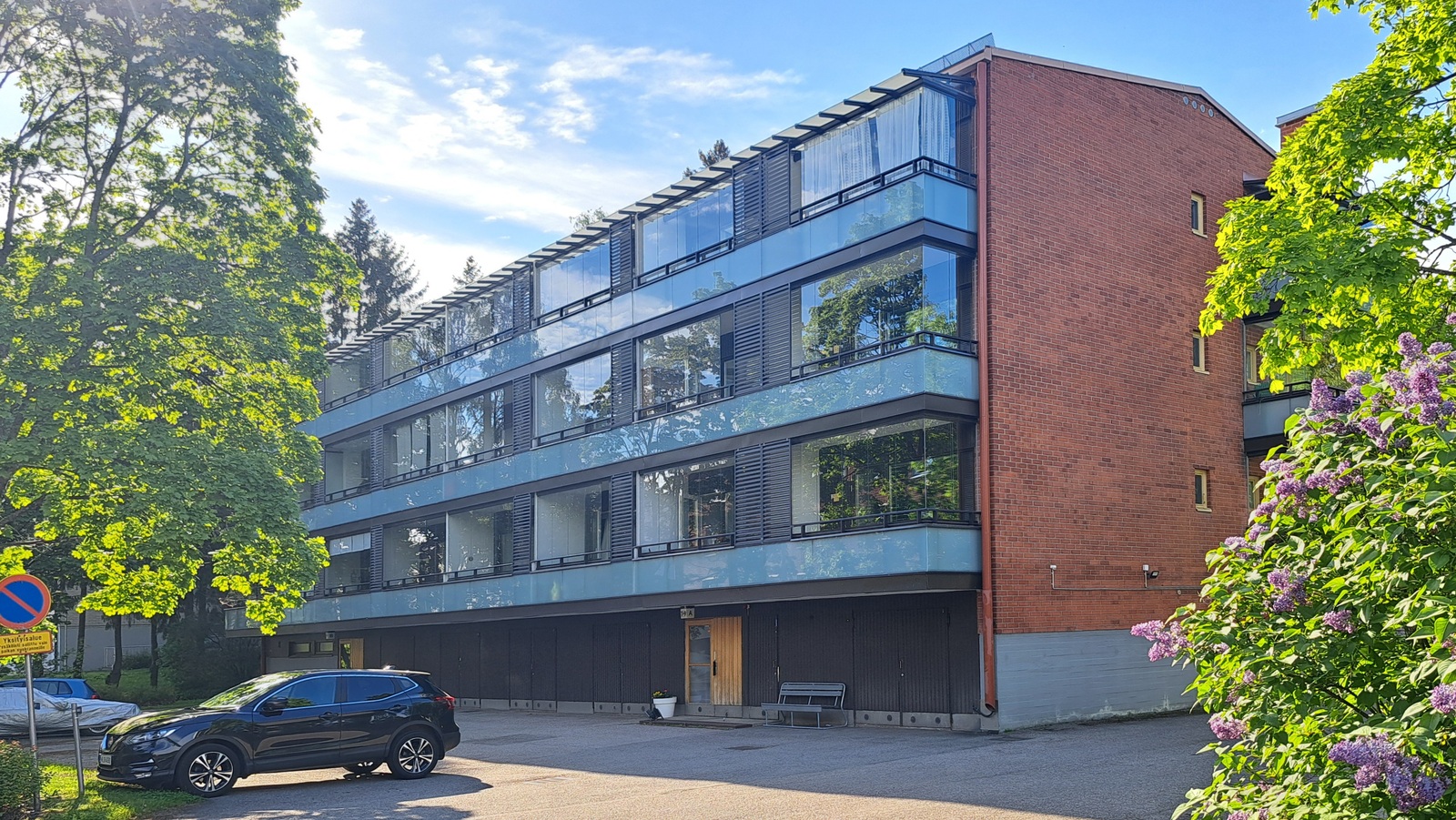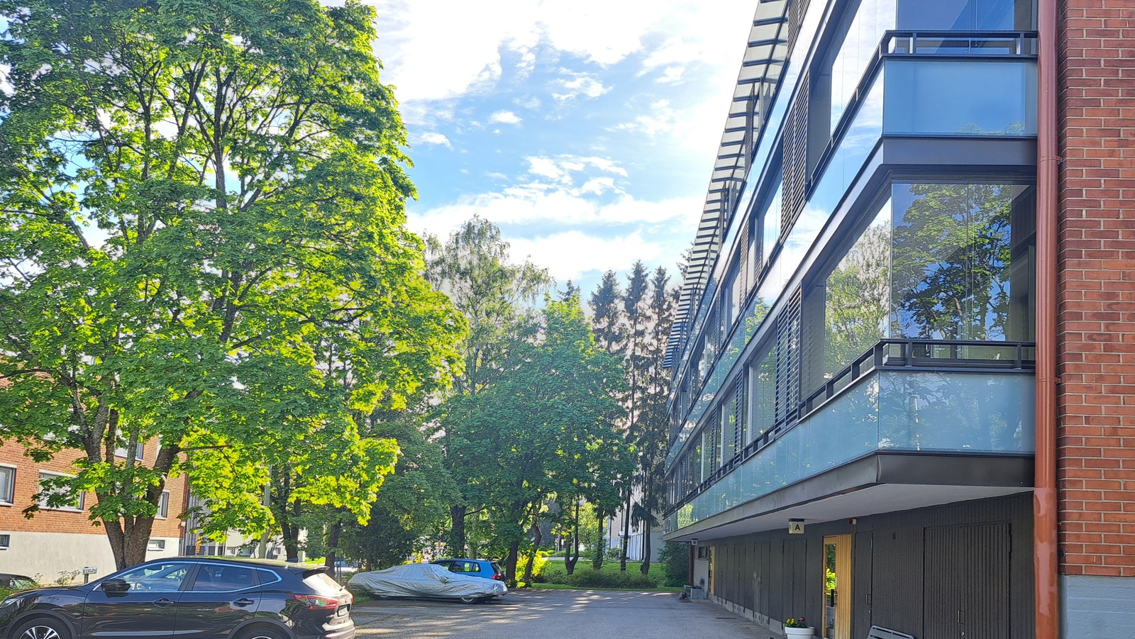 Vehreää pihaa pääsee ihastelemaan myös olohuoneen jatkeena olevalta lasitetulta parvekkeelta. Käytännöllistä säilytystilaa on sekä eteisessä, että tilavassa makuuhuoneessa. Yhtiö on tehnyt remontit ajallaan ja alue jatkaa tulevaisuudessa kehittymistään.
