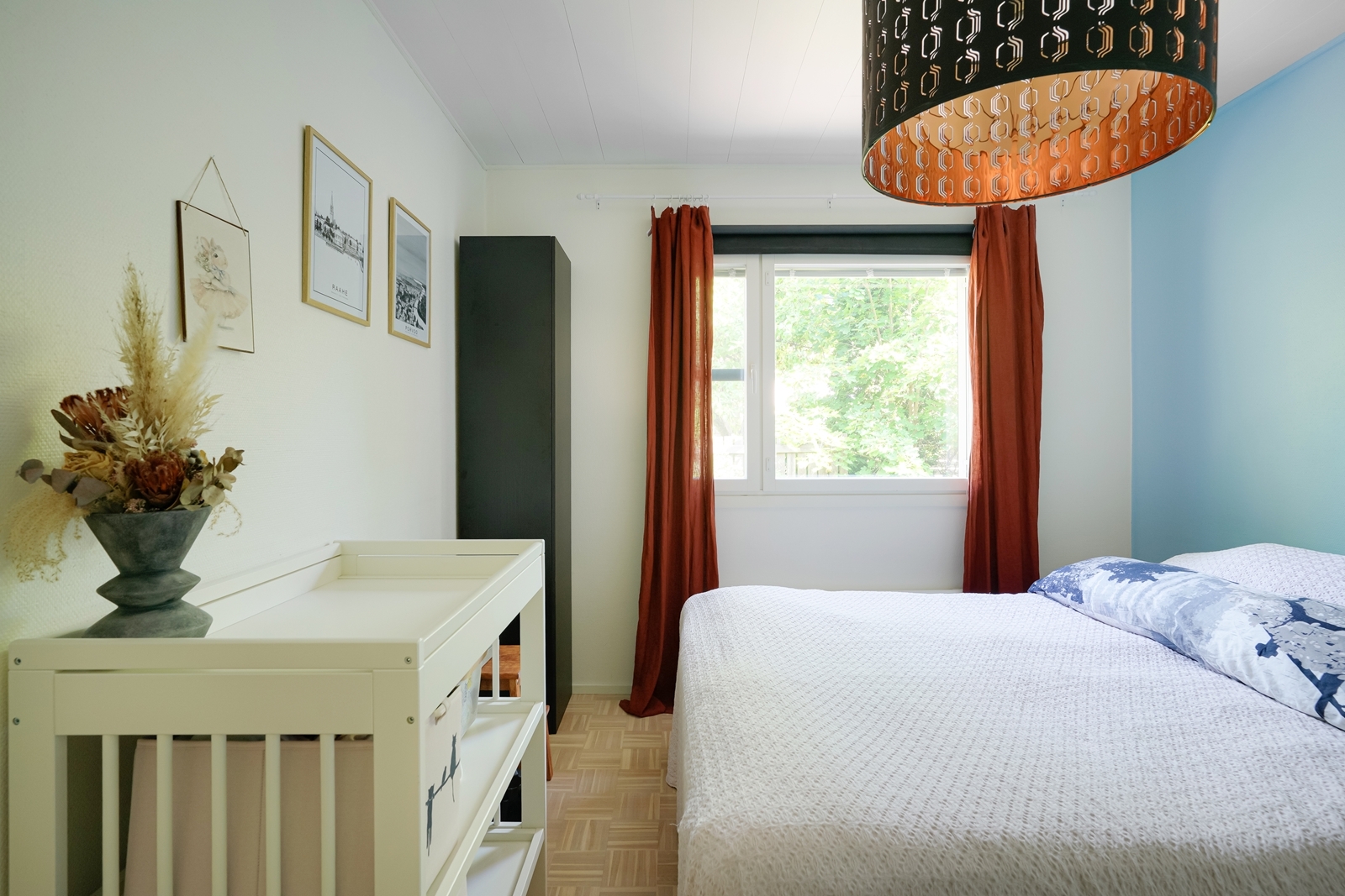 | Makuuhuoneen kuvaus | Lukumäärä: 1, Lattia parketti, seinät lasikuitutapetti (maalattu) |