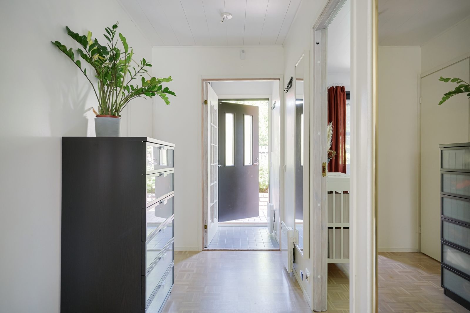 | Muut huoneet ja tilat | Eteinen; peililiukuovikaapisto, lattia parketti, seinät levy (maalattu) Tuulikaappi; lattia laatta, seinät puupaneeli / levy Vaatehuone |