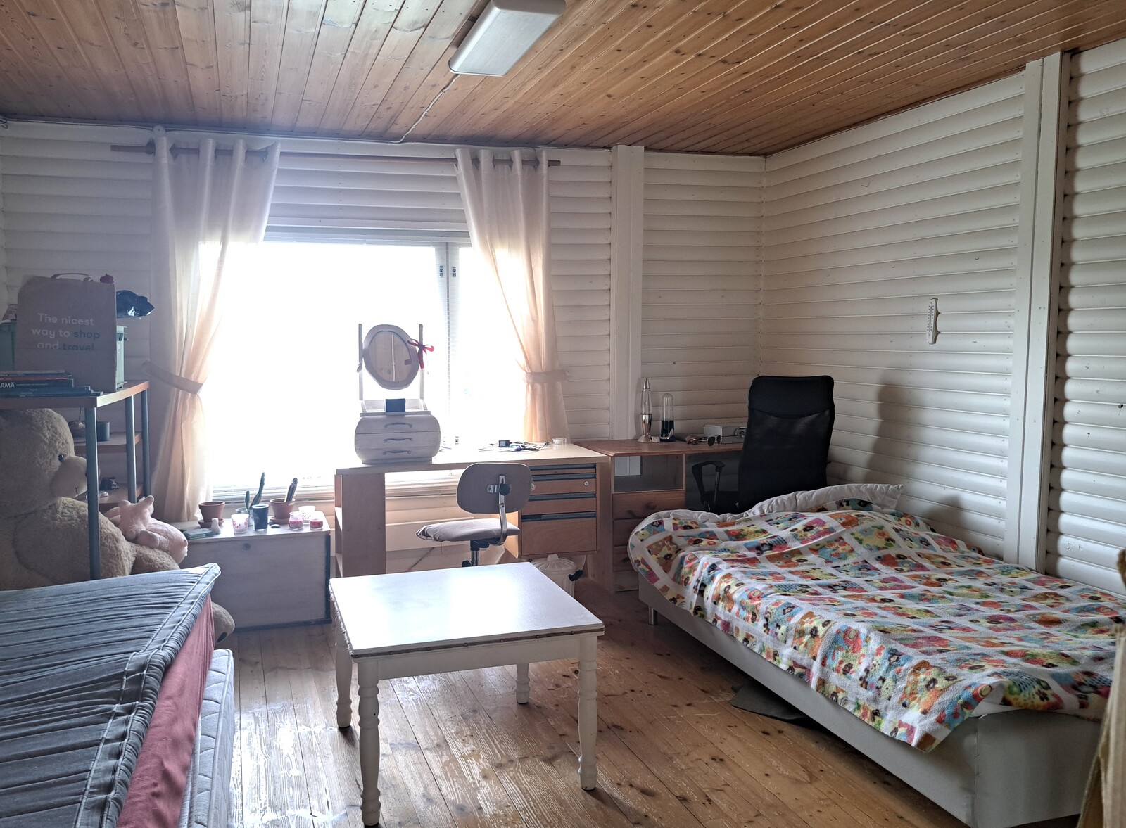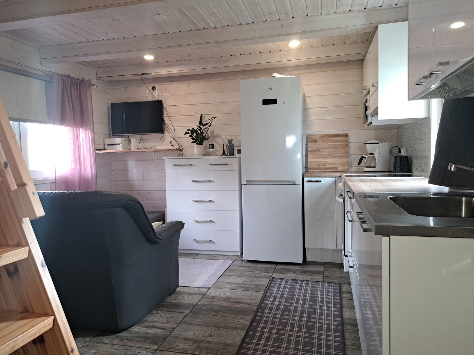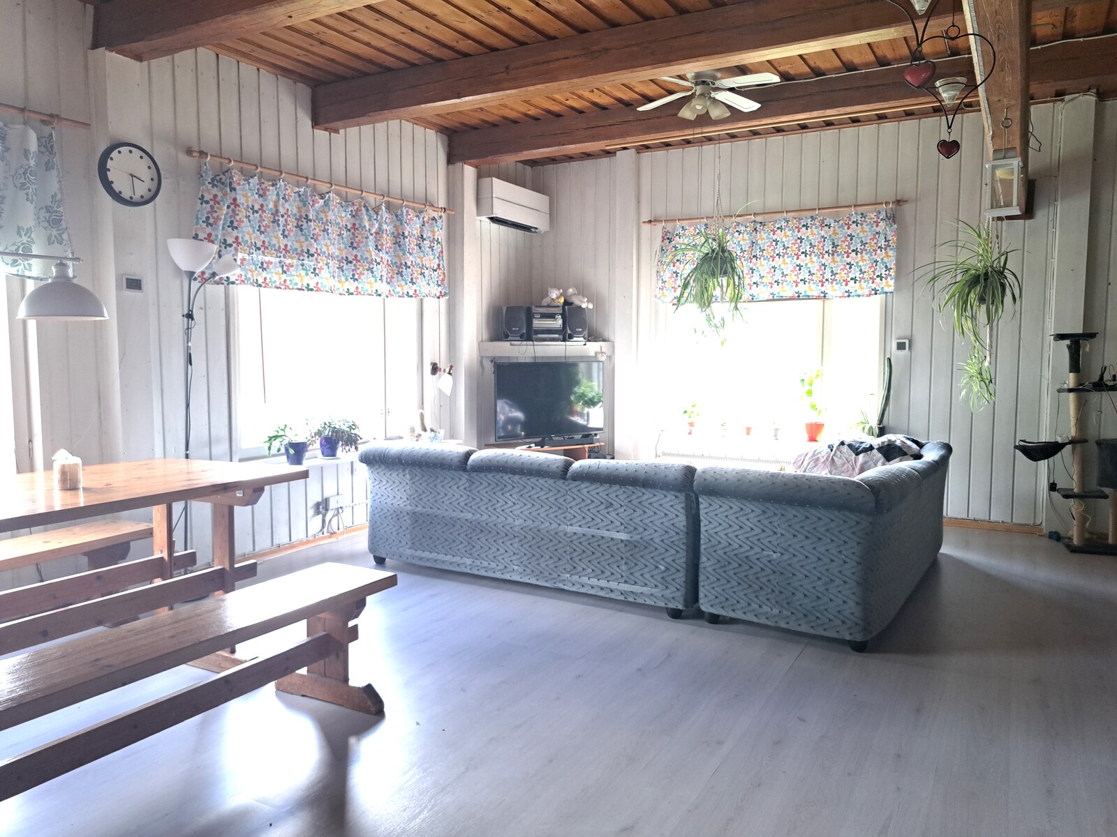 Seinät (maali ja puu), lattiat (laminaatti) |