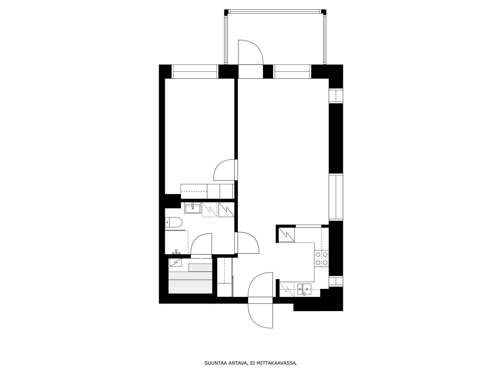 | Huoneistoselitelmä | 2 h, avokeittiö, kph/sauna, lasitettu parveke (Yj. 2h+kk+s) |