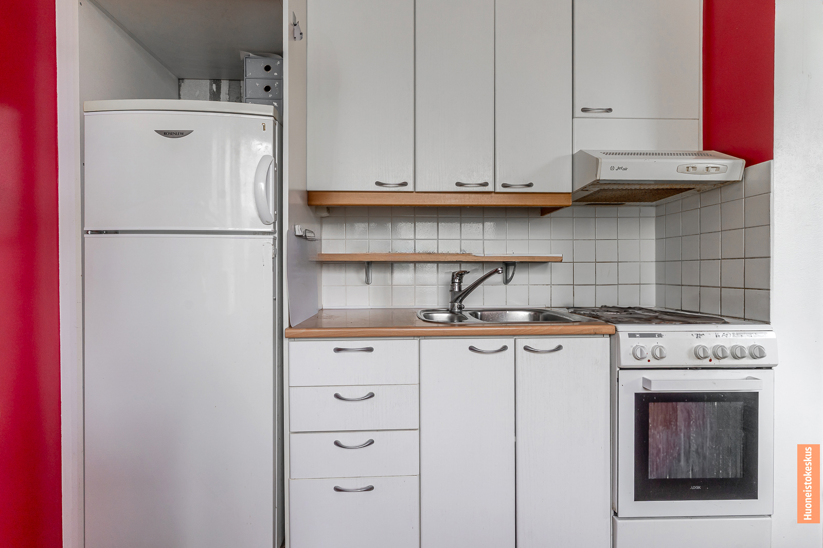 | Keittiön kuvaus | Liesi (sähköliesi, muu), seinät (maali), lattiat (laminaatti), liesi, jääkaappipakastin ja liesituuletin |