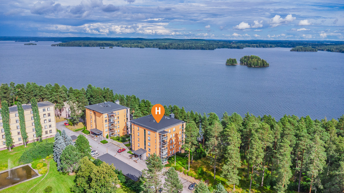 Kangasalan Pikonlinnan arvostetulla ja luonnonkauniilla alueella sijaitsee ylimmän kerroksen viihtyisä kaksio. Taloyhtiöllä on Vesijärven rannalla oma laituri ja pukukoppi. Ulkoilumaastot ja uimaranta aivan asunnon vieressä.