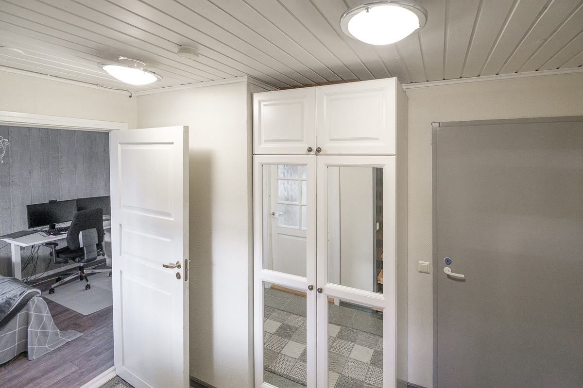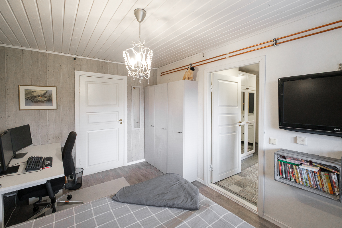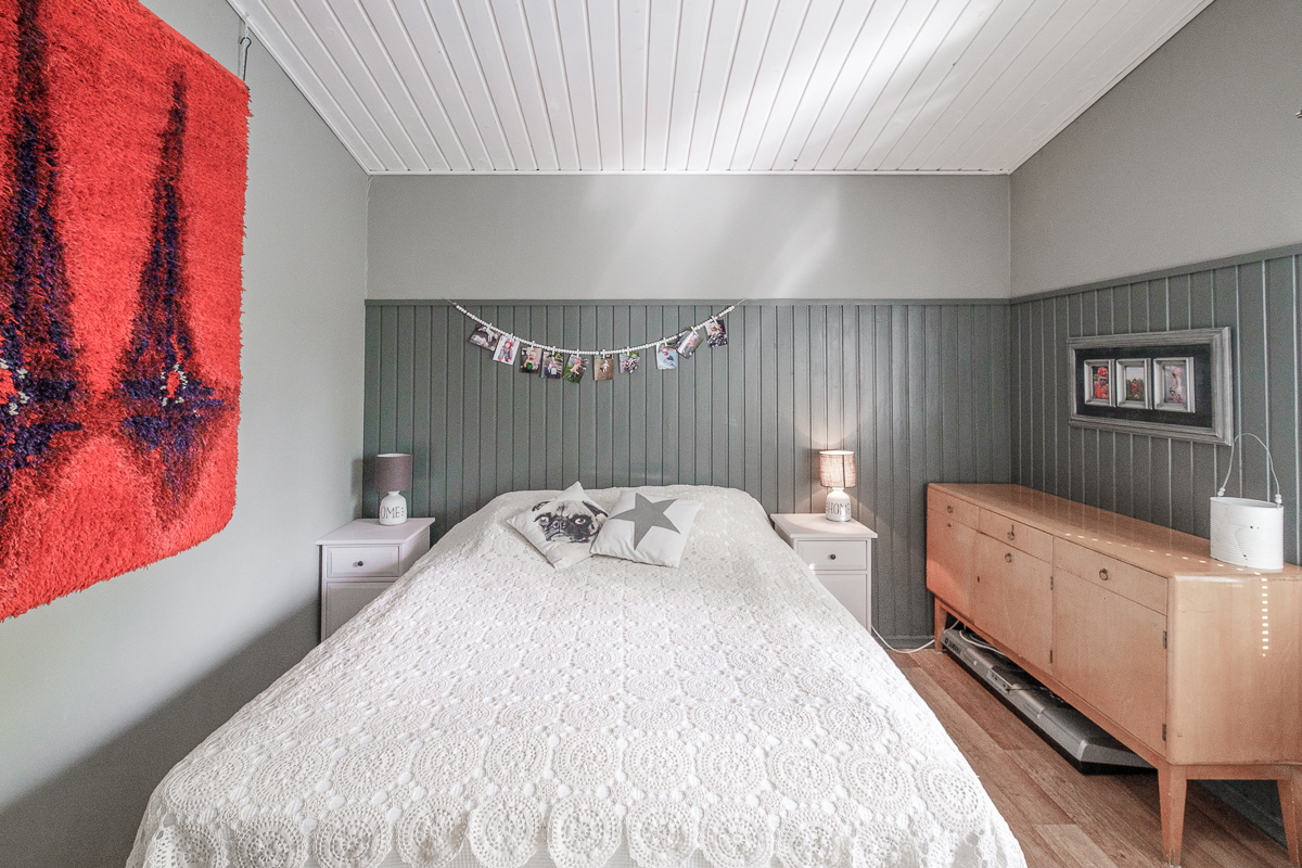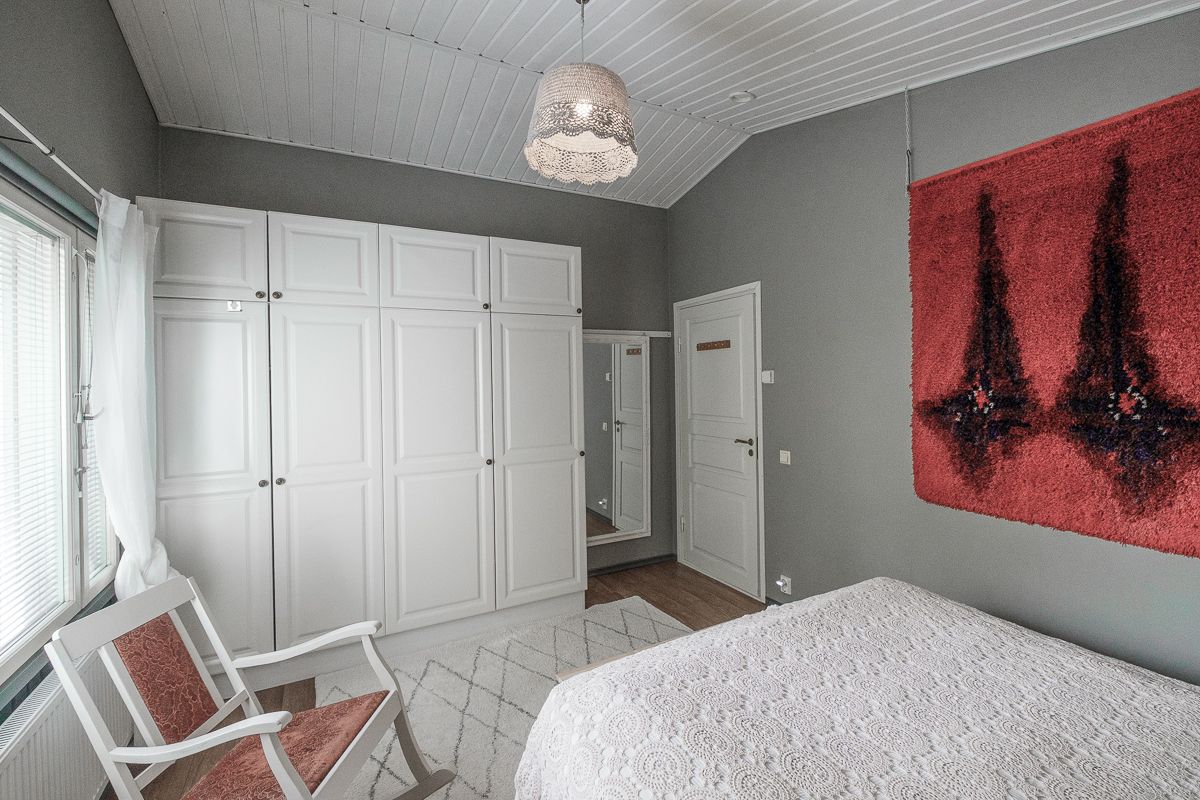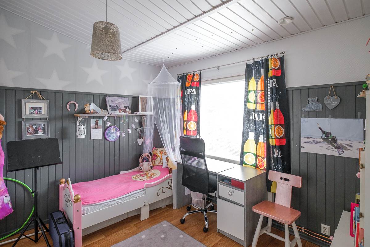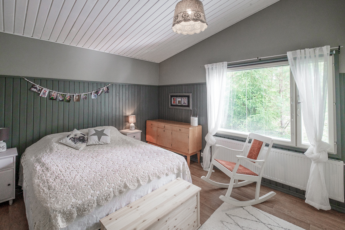 | Makuuhuoneen kuvaus | Lukumäärä: 3, seinät (puolipaneeli ja tapetti), lattiat (muovimatto ja vinyylikorkki) |
