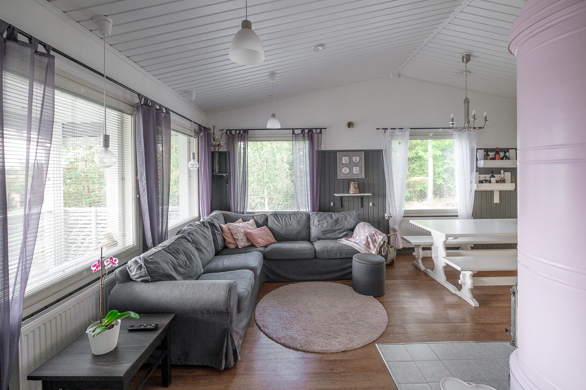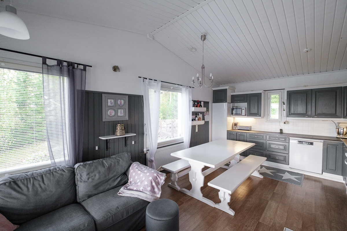 Talon pohjaratkaisu on avara ja käytännöllinen, ja suuret ikkunat tuovat runsaasti luonnonvaloa sisään. Laadukkaat materiaalit ja yhtenäinen sisustustyyli tekevät kokonaisuudesta harmonisen ja viihtyisän.
