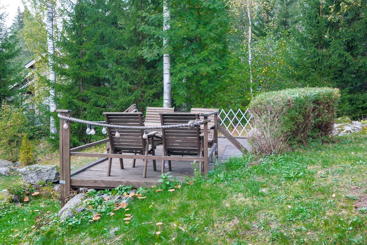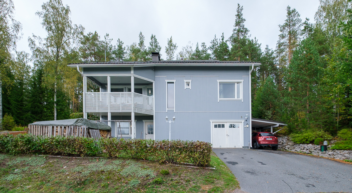 Pihapiiri on suojaisa ja helppohoitoinen, ja tilava autotalli tarjoaa runsaasti säilytystilaa sekä mahdollisuuden harrastamiseen.