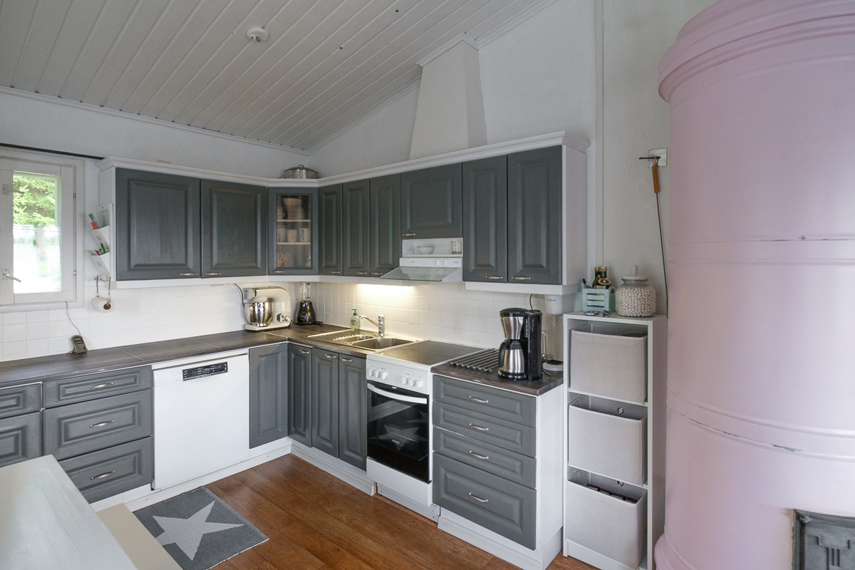 | Keittiön kuvaus | Liesi (Keraaminen liesi), työtasot (laminaatti), seinät (maali), lattiat (muovimatto), jääkaappi, liesituuletin ja astianpesukone |