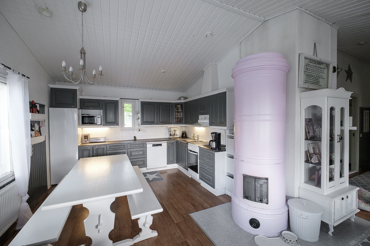 Lämmityskustannukset pysyvät maltillisina puulämmityksen ansiosta, ja lisäksi varaava takka tuo lämpöä ja tunnelmaa viileämpiin päiviin.