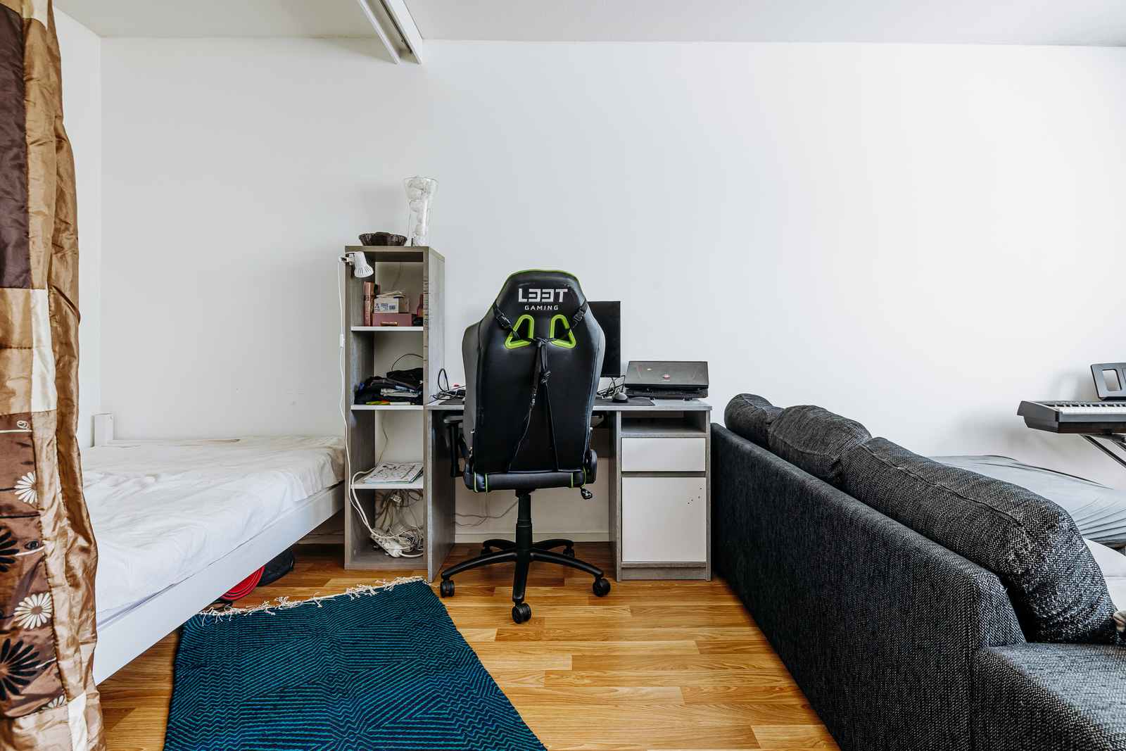 | Makuuhuoneen kuvaus | Lukumäärä: 1, seinät (maali), lattiat (muovimatto), Makuuhuoneesta kulku parvekkeelle. |
