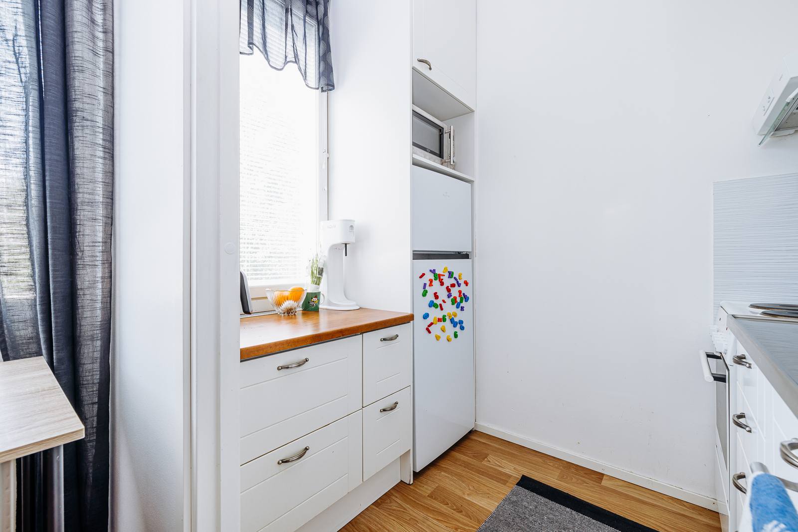 Tehokkaasti suuniteltu kaksio jossa neliöt kohdallaan. Pesuhuone remontoitu ja keittökalusteet uusittu. Lasitettu parveke aukeaa etelään. Matkakeskus ja päivittäin tarvittavat palvelut kävelyetäisyydellä. Tässä näppärä kaksio omaan käyttöön tai sijoituskohteeksi. Myydään vuokrattuna.