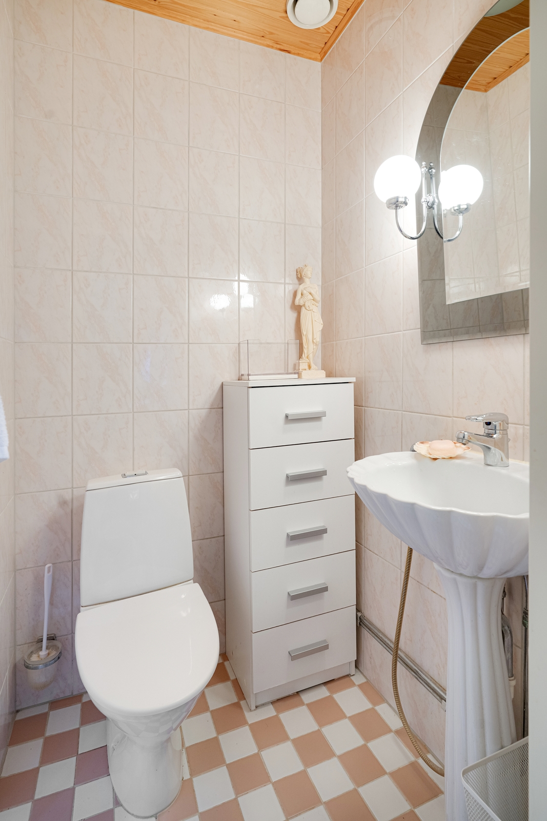 Lukumäärä: 1, WC-istuin ja pesuallas, seinät (Kaakeli), lattiat (Laatta) |
