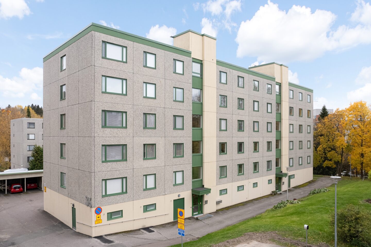 | Tehdyt remontit | 2003; patteritermostaatit vaihdettu 2005-2006; parveke-elementit ja betoniseinät kunnostettu 2007; lämmönjakokeskus ja automatiikka uusittu 2008; ilmastointikanavat nuohottu 2009; asbestikartoitus, kiinteistön kuntoarvio ja taloyhtiön kuntotodistus 2011; ulkoseinäelementtien saumakorjaus tarvittavin osin 2012; lukituksen korjaaminen 2014; ikkunat ja parvekeovet uusittu, samalla uusittu myös autotallien ovet ja avausmekanismit sekä asennettu uudet pääsisäänkäyntien ovet joissa myös sähköinen avausautomatiikka 2015; poistoilmakone vaihdettu suurempi tehoiseen ja invertteri-säätöiseen malliin, ilmanvaihtohormin nuohous/säätö ja kanavan säätöventtiilien uusinta sekä korjaukset ilmanvaihtokanaviin tarpeellisilta osin (alumiini kurttuputki jatkokset korvattu kovalla putkella) 2016; piha-alueen kulkuteiden ja vapaa-ajan viettopaikan korjaukset ja uudistukset, taloyhtiön saunaosaston täydellinen saneeraus ja nykyaikaistaminen 2018; sokkelin huoltomaalaus, kylpyhuoneiden kosteuskartoitus 2019; vesikaton saneeraus 2023; pesuhuoneiden saneeraus, hissien uusiminen, porraskäytävien saneeraus, käyttövesi- ja viemäriputkiston uusiminen, LTO-järjestelmän asennus, sähkönousujen ja -keskusten uusiminen, lukitusjärjestelmän uusiminen Abloy Easy 2024; huoneistokohteiaset palovaroittimet 10 v. paristoilla, jätekatoksen oven uusiminen |